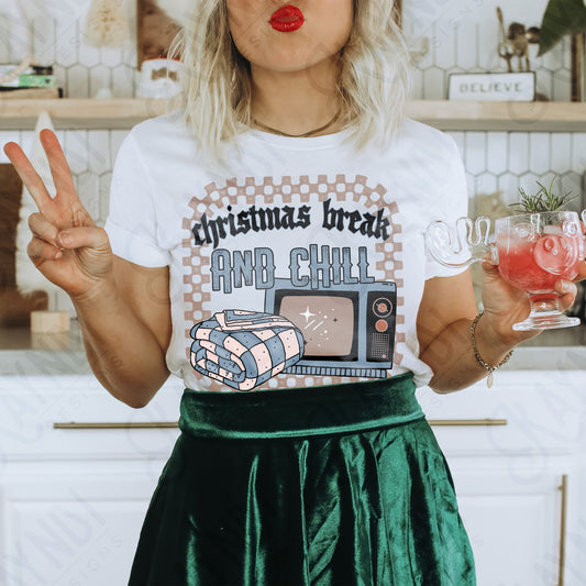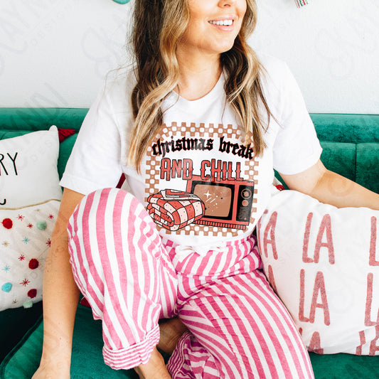 Christmas Break and Chill Red Sublimation Design PNG Digital Download Printable Christmas Fun Blanket TV