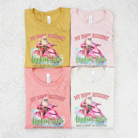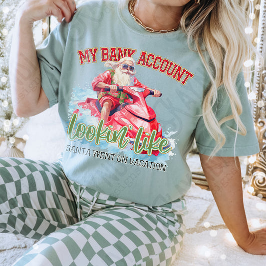 My Bank Account Lookin Like Santa Went on Vacation Red Sublimation Design PNG Digital Download Printable Christmas Santa Beach Ocean