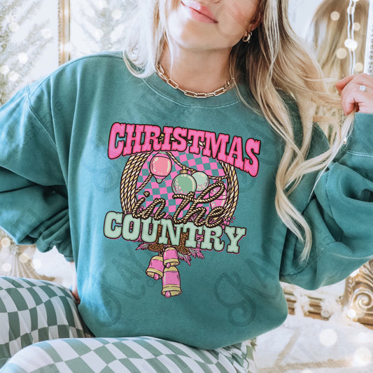 Christmas in the Country Pink Sublimation Design PNG Digital Download Printable Western Christmas Bells