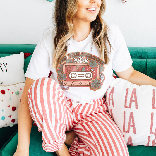 Tis the Season Sublimation Design PNG Digital Download Printable Retro Groovy Vintage Christmas Music 70s 90s Snowflake Winter Cassette Tape