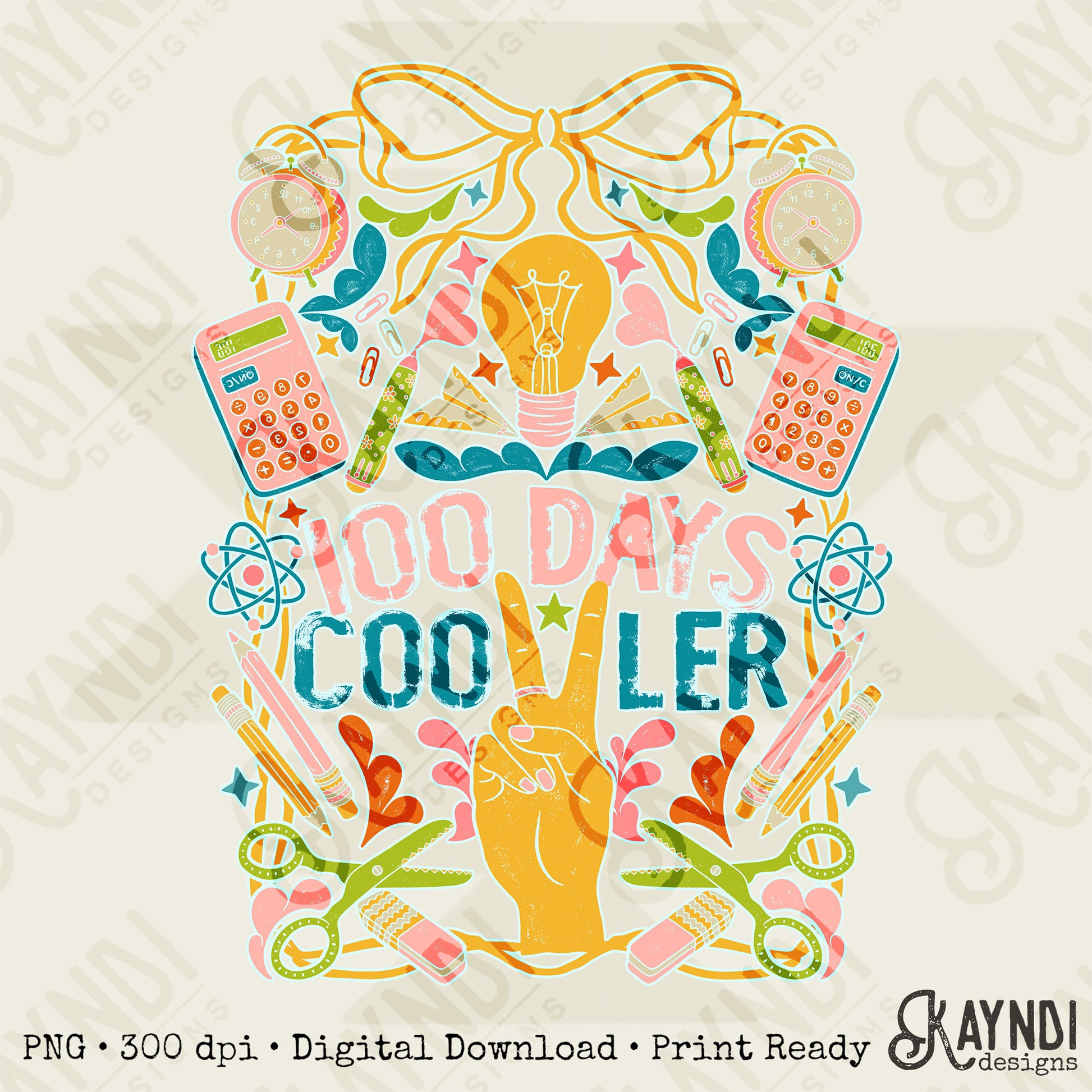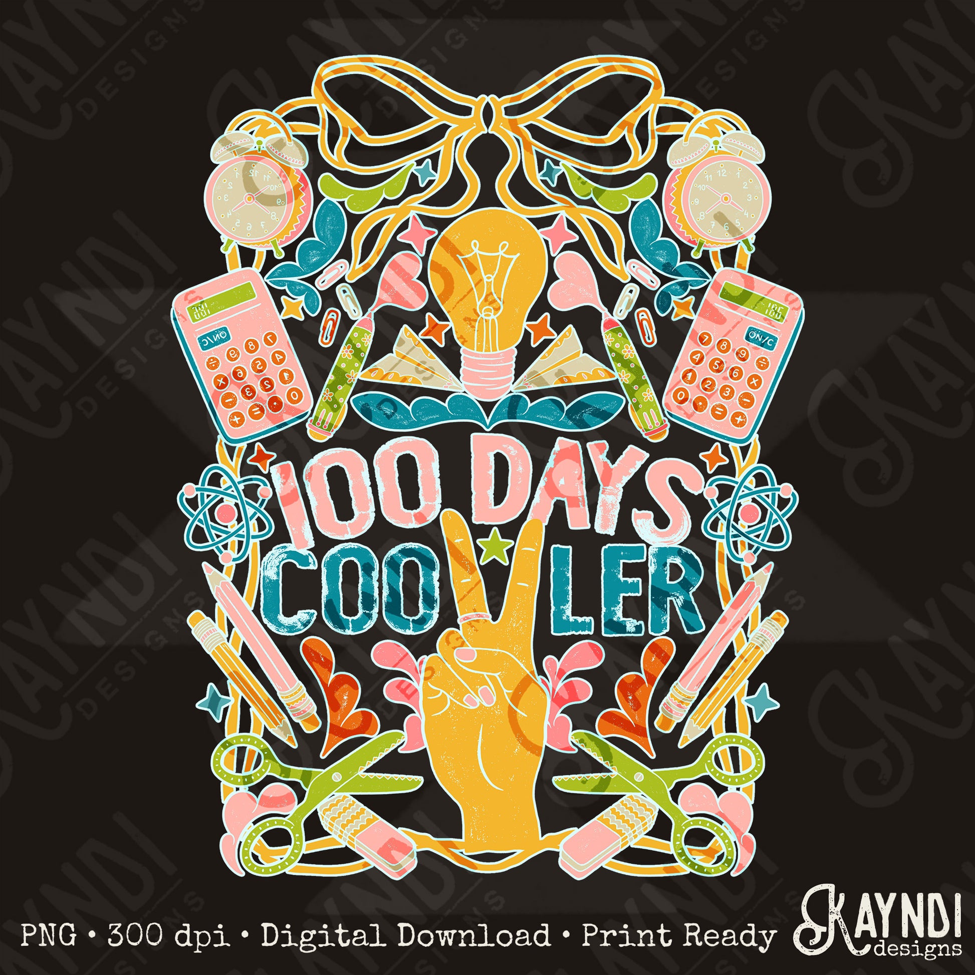 100 Days Cooler Light Sublimation Design PNG Digital Download Printable School Vintage Peace