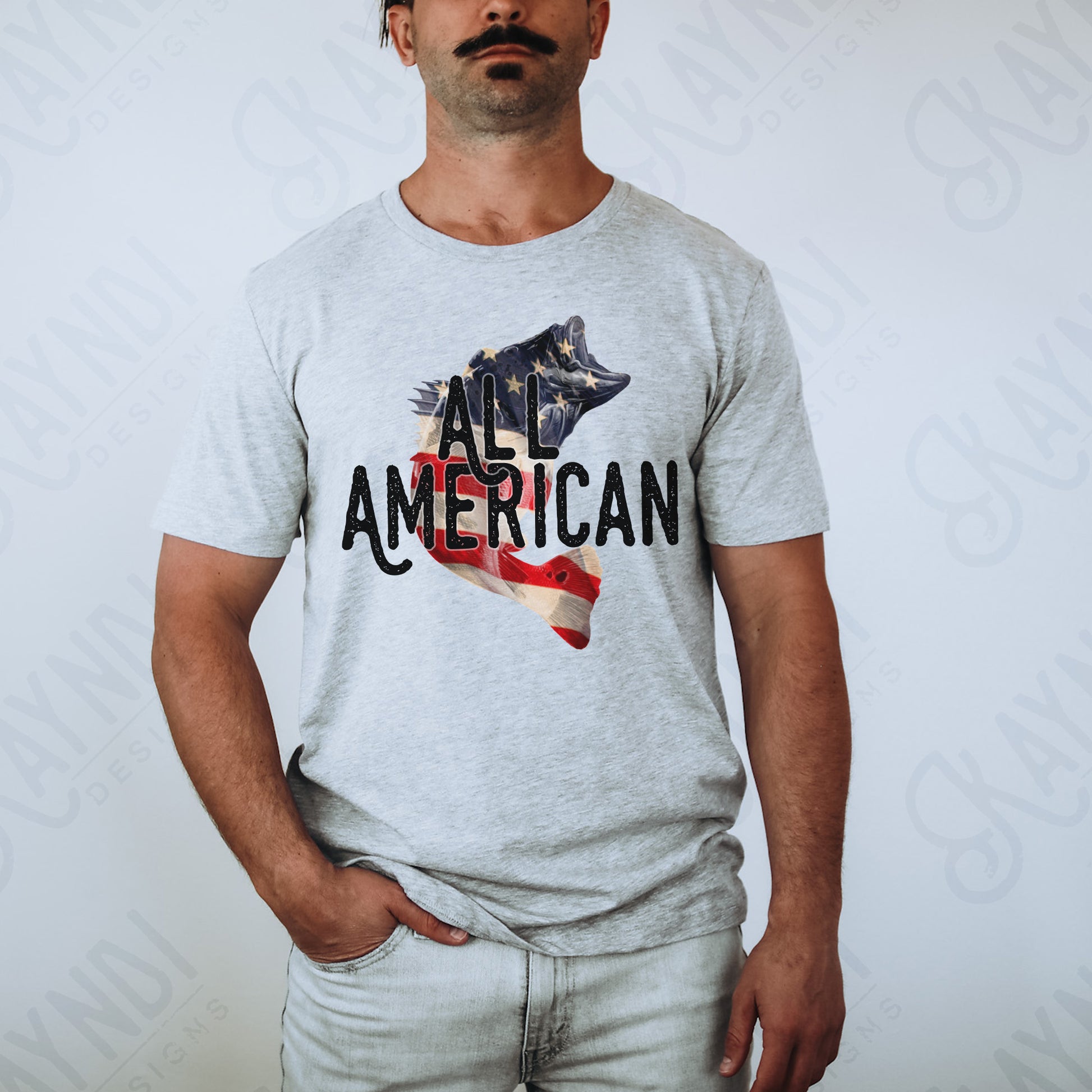 All American Bass Sublimation Design PNG Digital Download Printable Fishing American Flag Patriotic