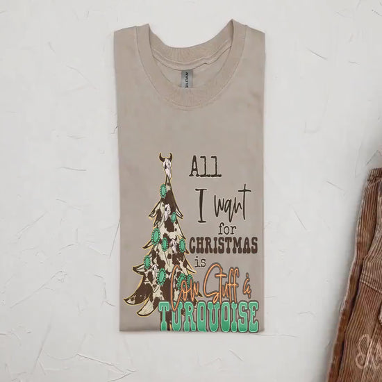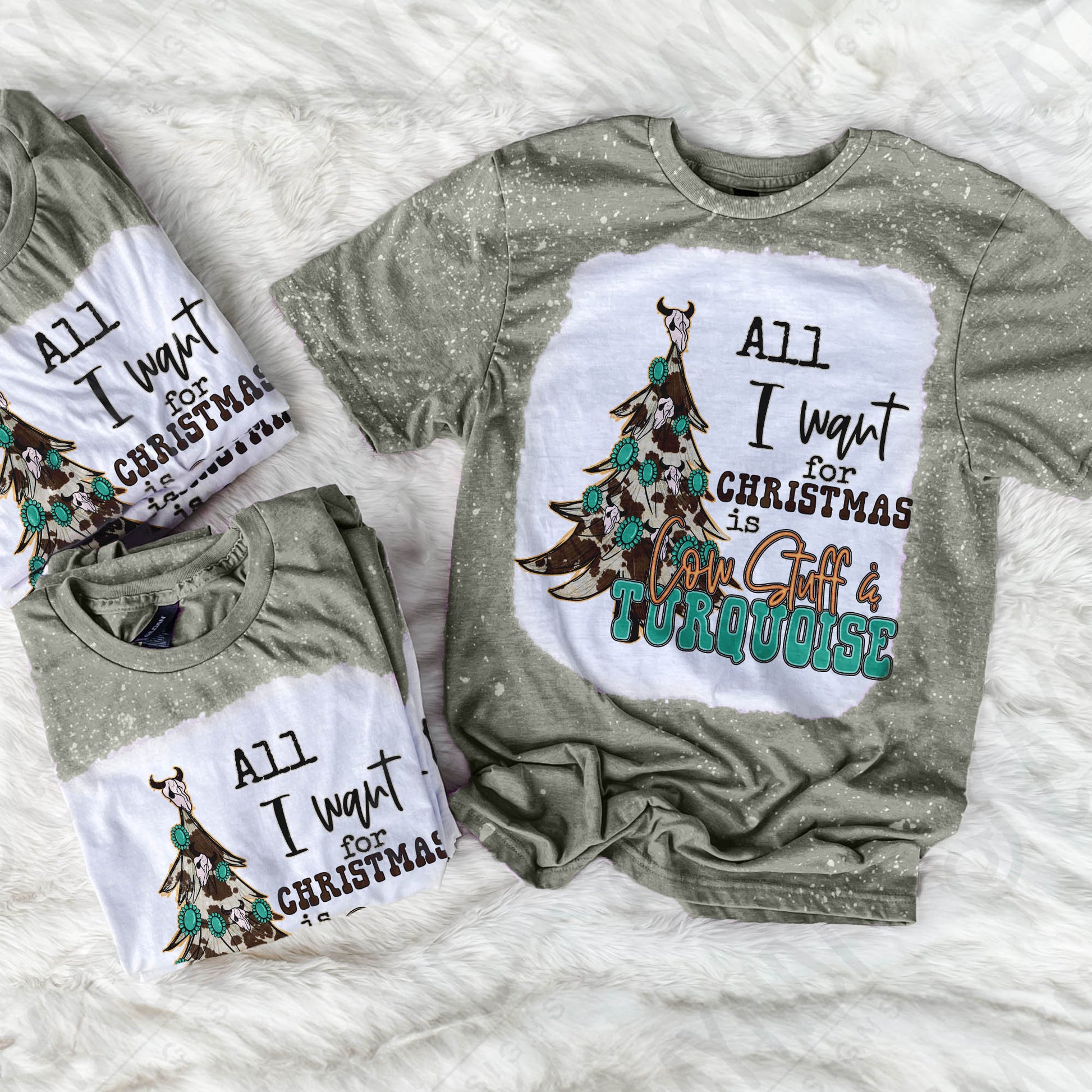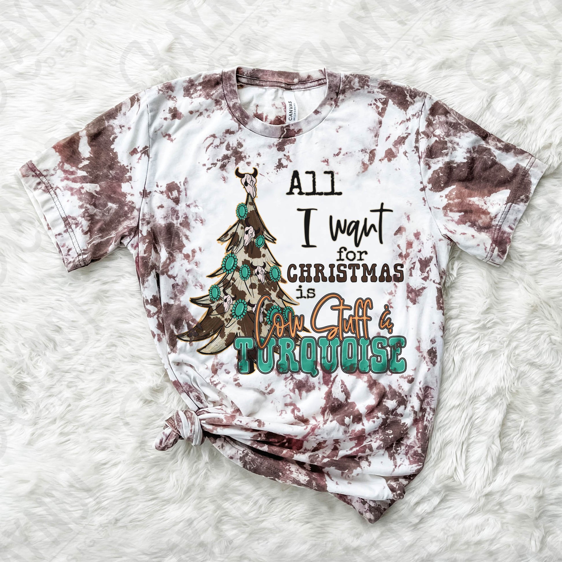 All I Want for Christmas is Cow Stuff & Turquoise Sublimation Design PNG Digital Download Printable Concho Cow Print Christmas Tree Western