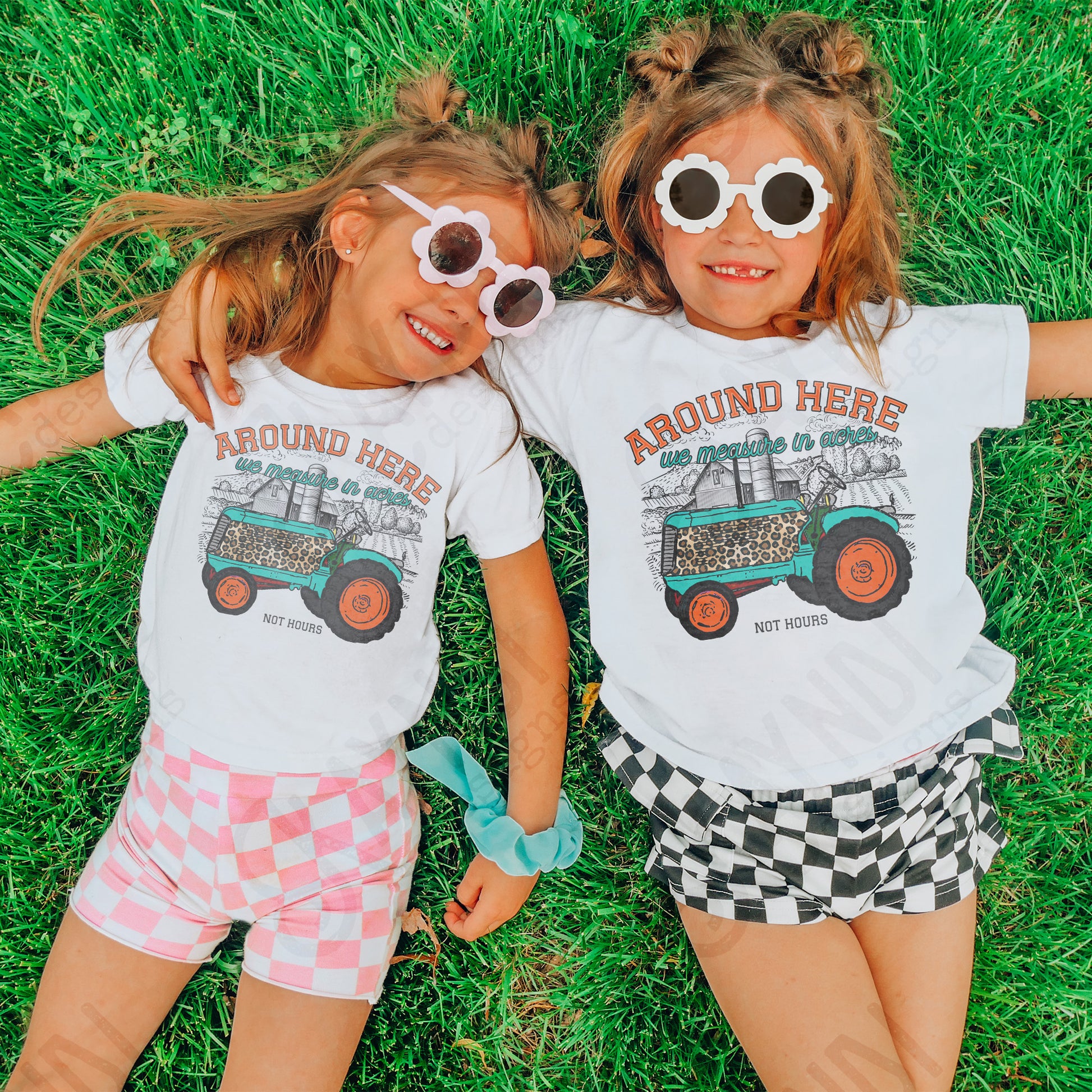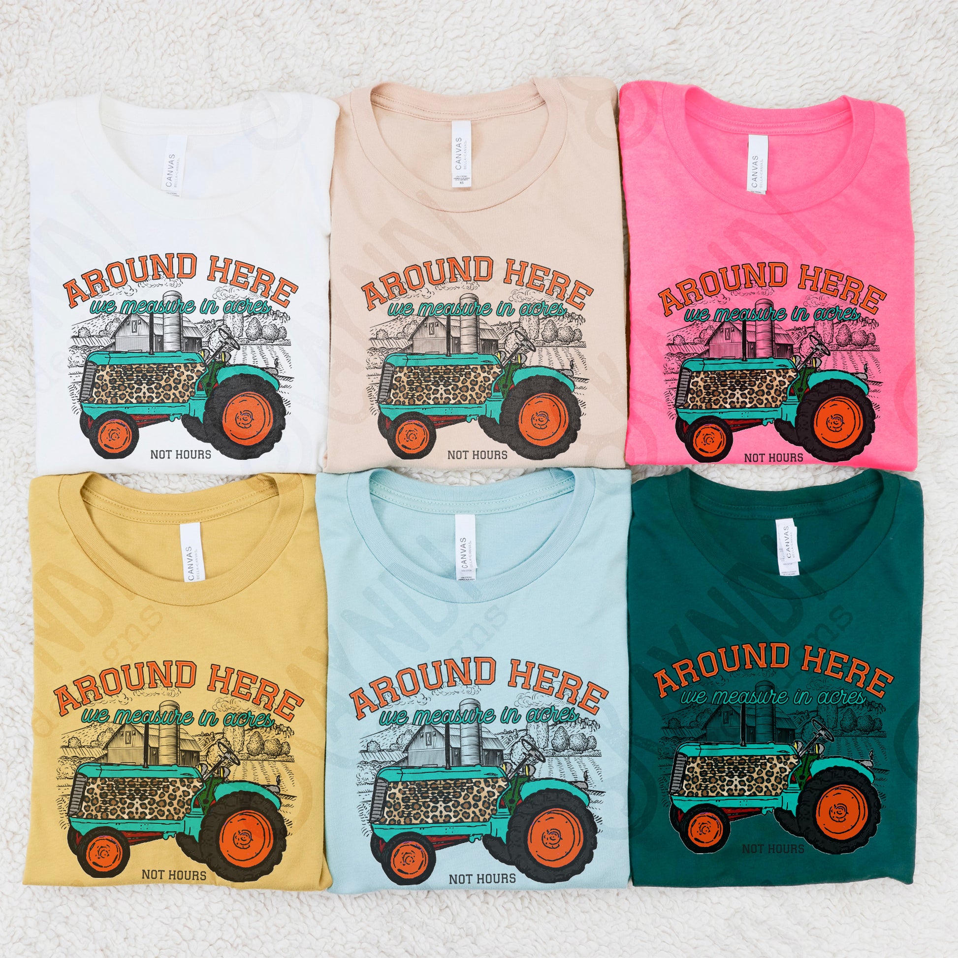 Around Here We Measure in Acres Orange Sublimation Design PNG Digital Download Printable Farm Tractor Cheetah
