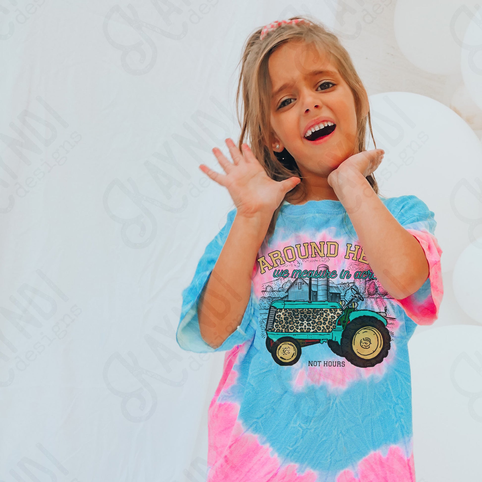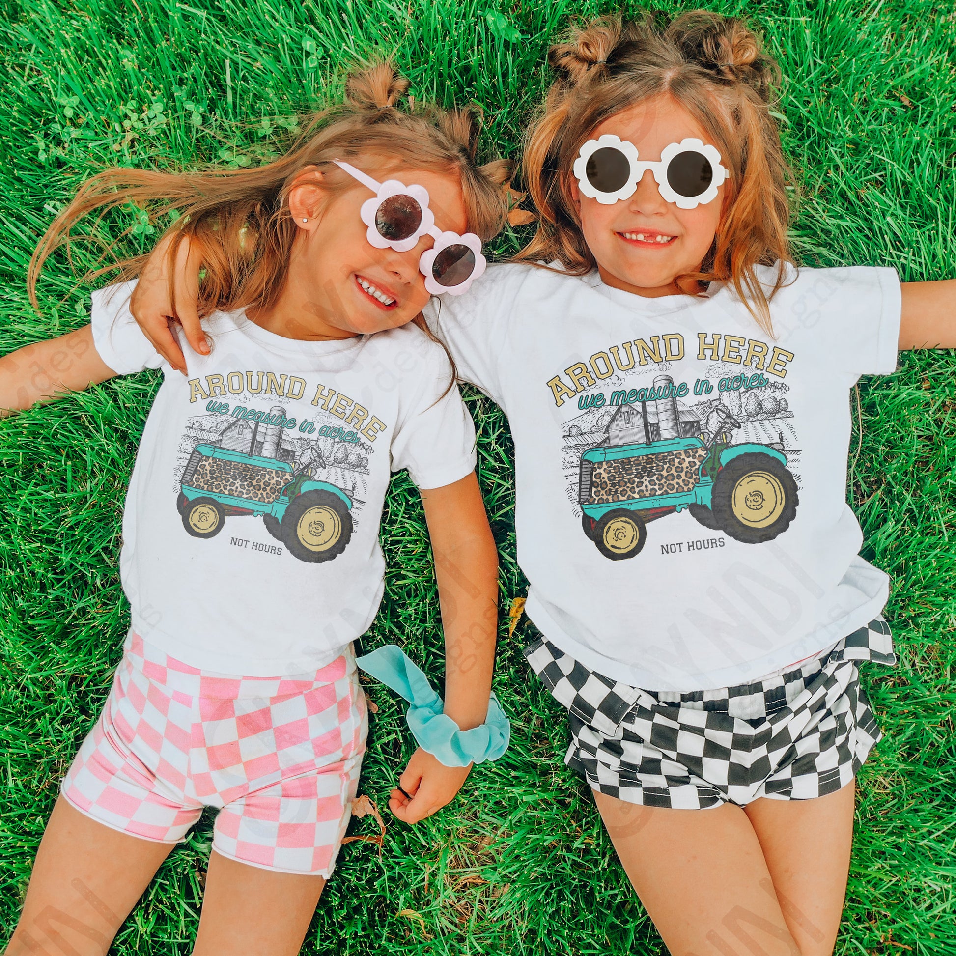 Around Here We Measure in Acres Yellow Sublimation Design PNG Digital Download Printable Farm Tractor Cheetah