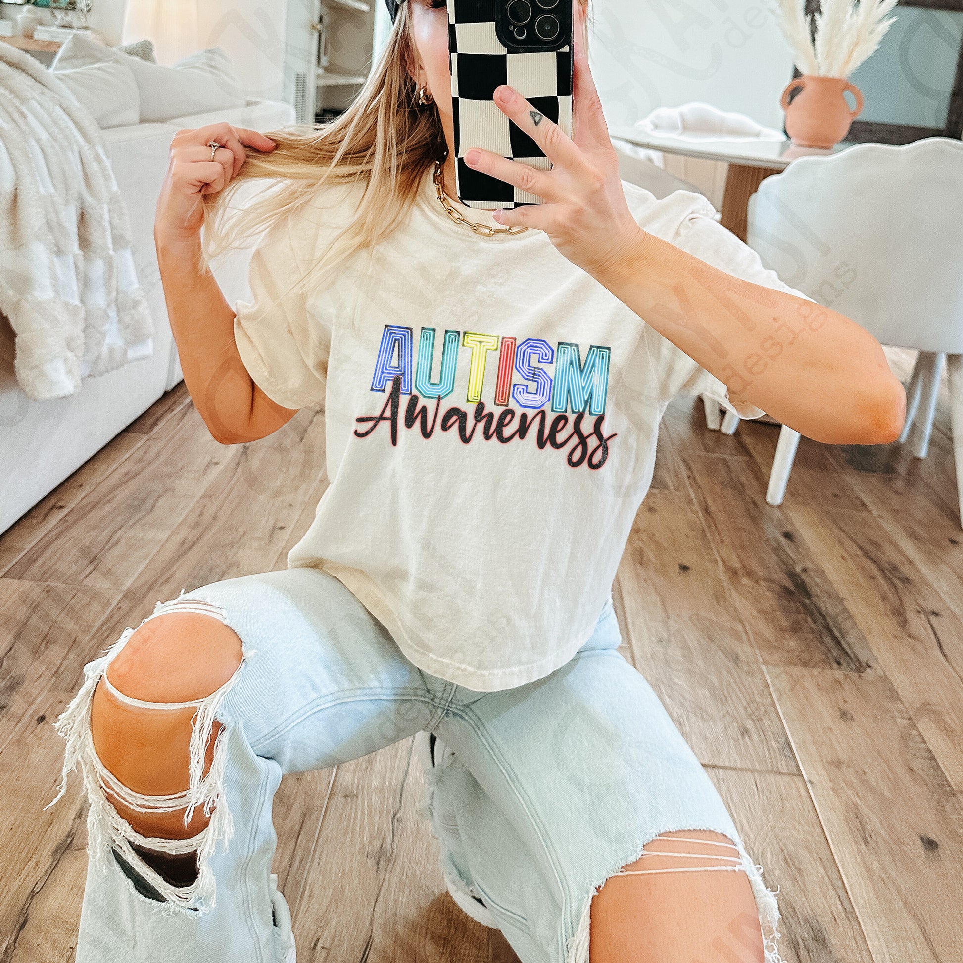 Autism Awareness Sublimation Design PNG Digital Download Printable DTF Print Neon Lights