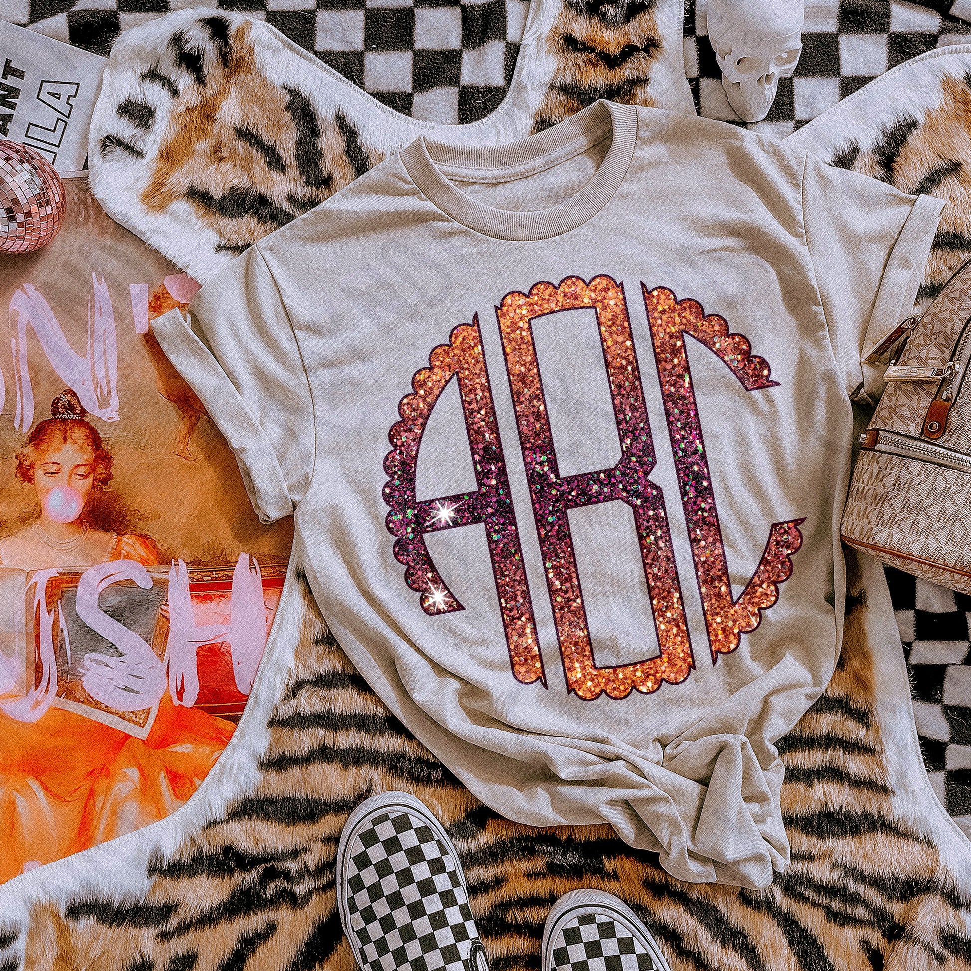 Autumn Night Glitter Scalloped Monogram Set Sublimation Design PNG Digital Download Printable Football Autumn Glitter