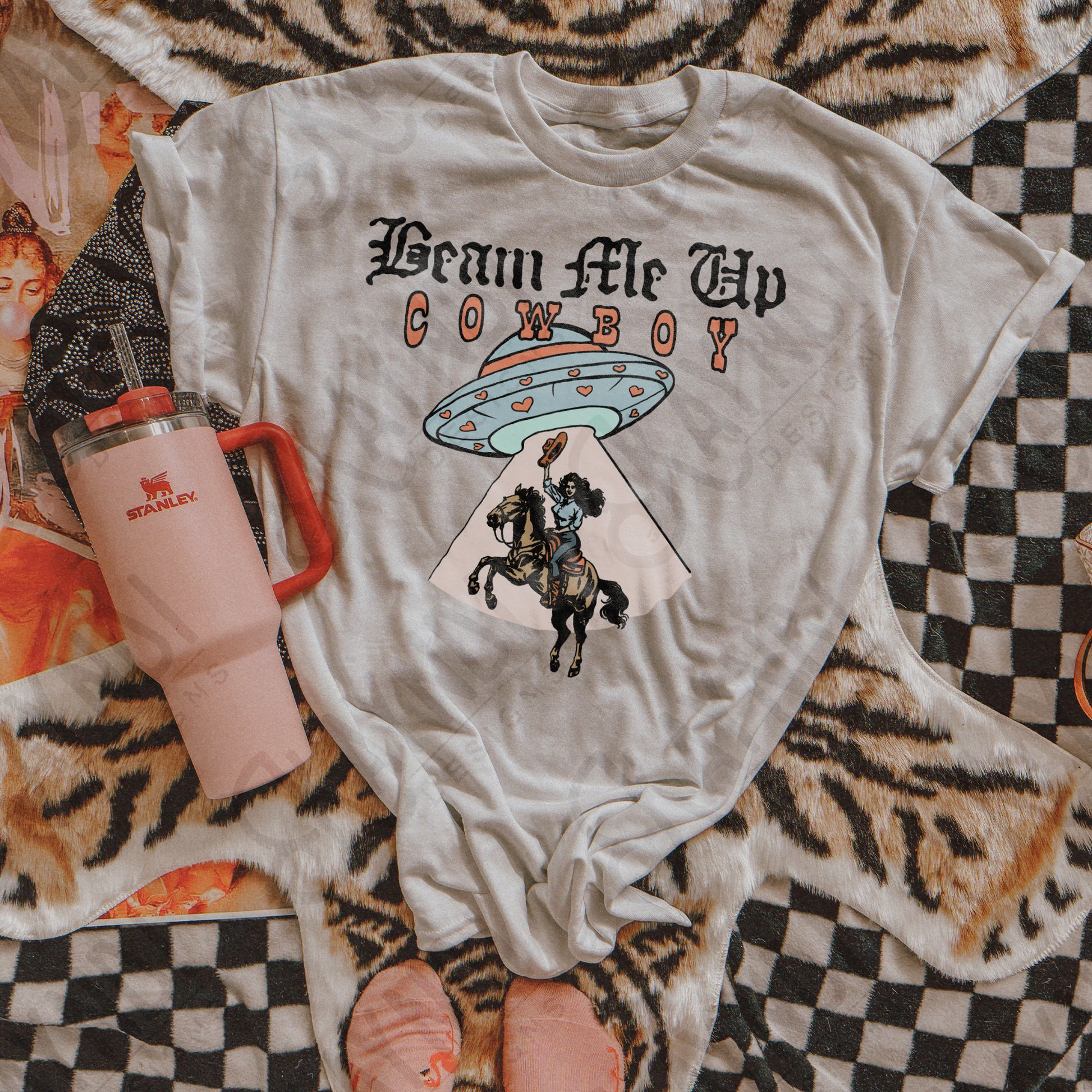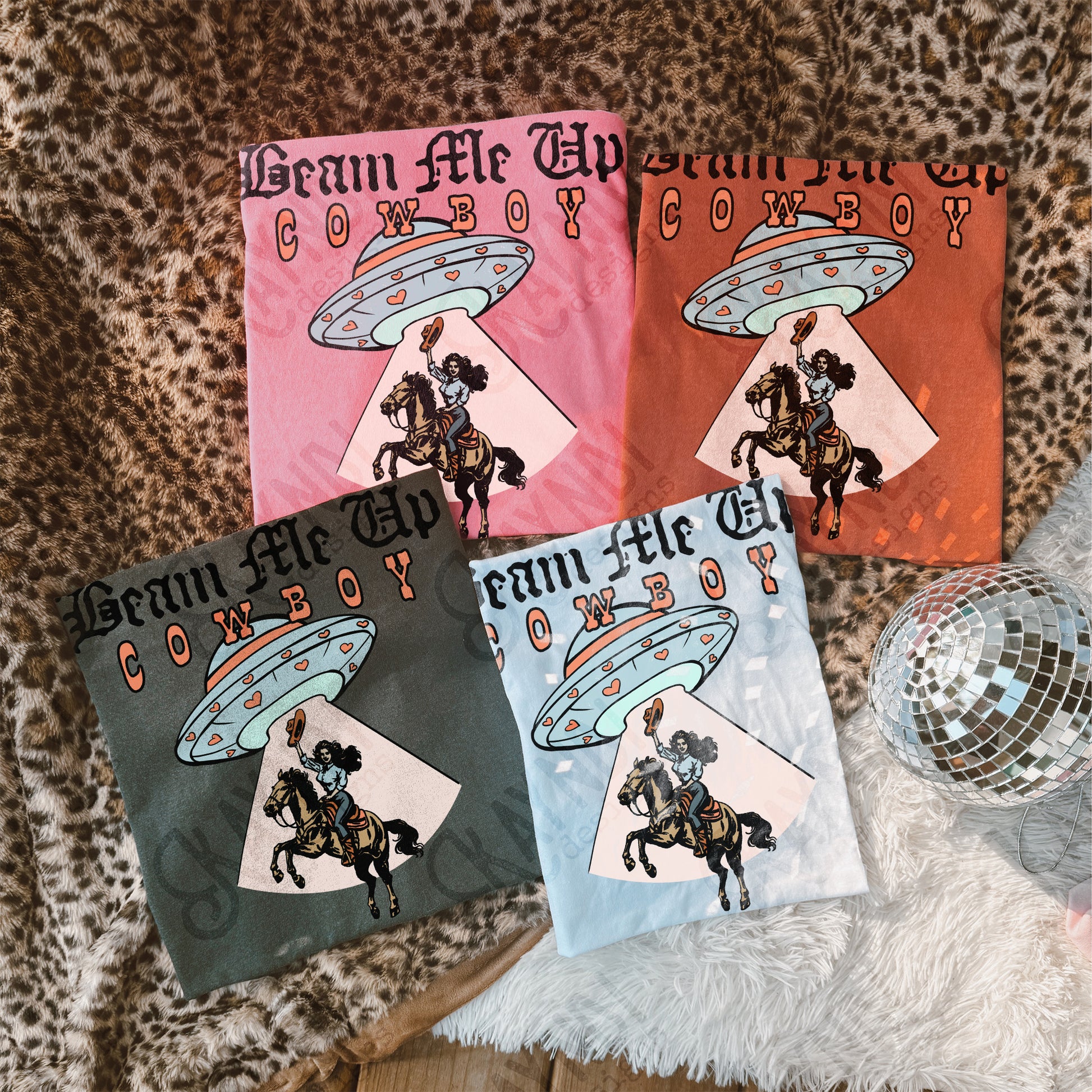 Beam Me Up Cowboy Sublimation Design PNG Digital Download Cowgirl UFO