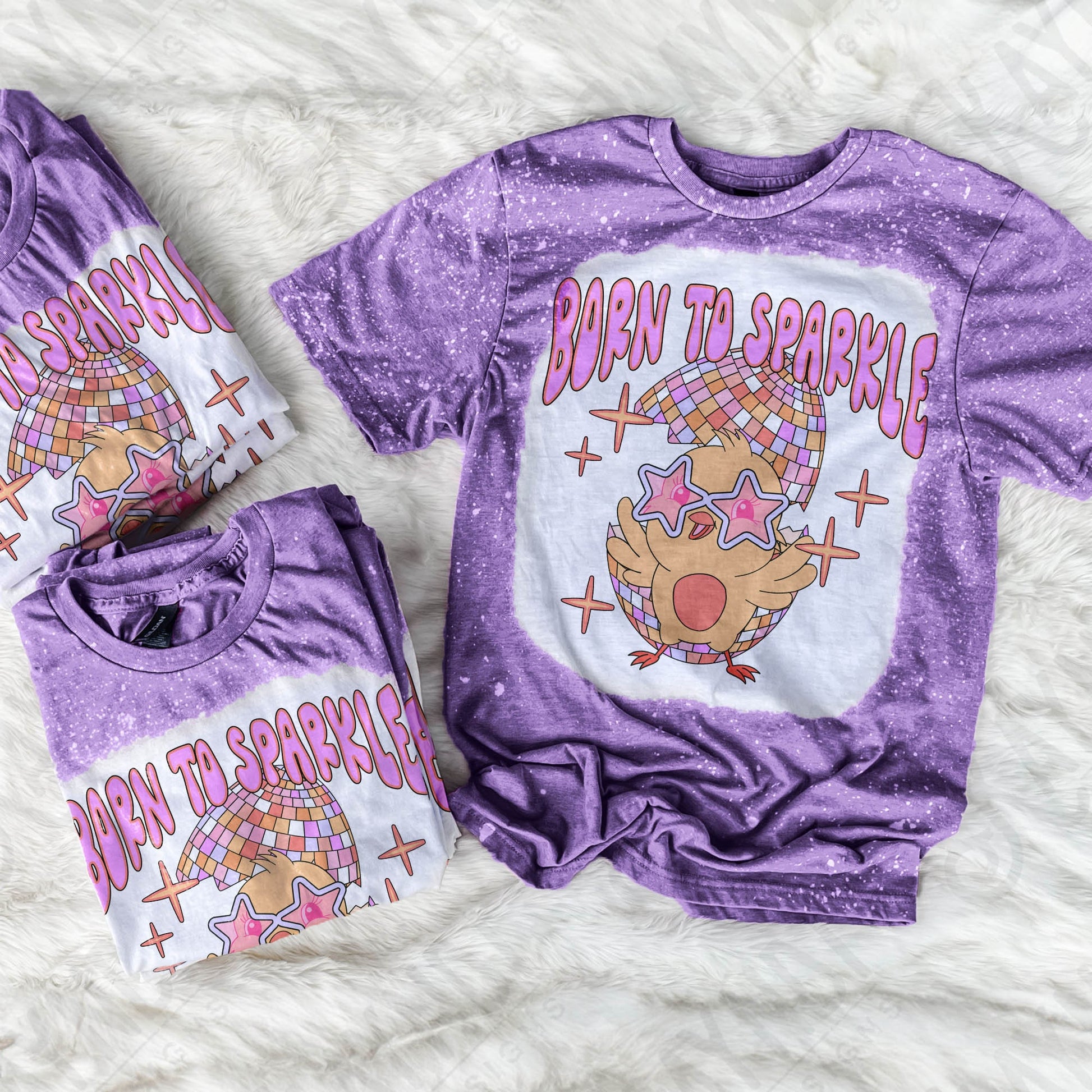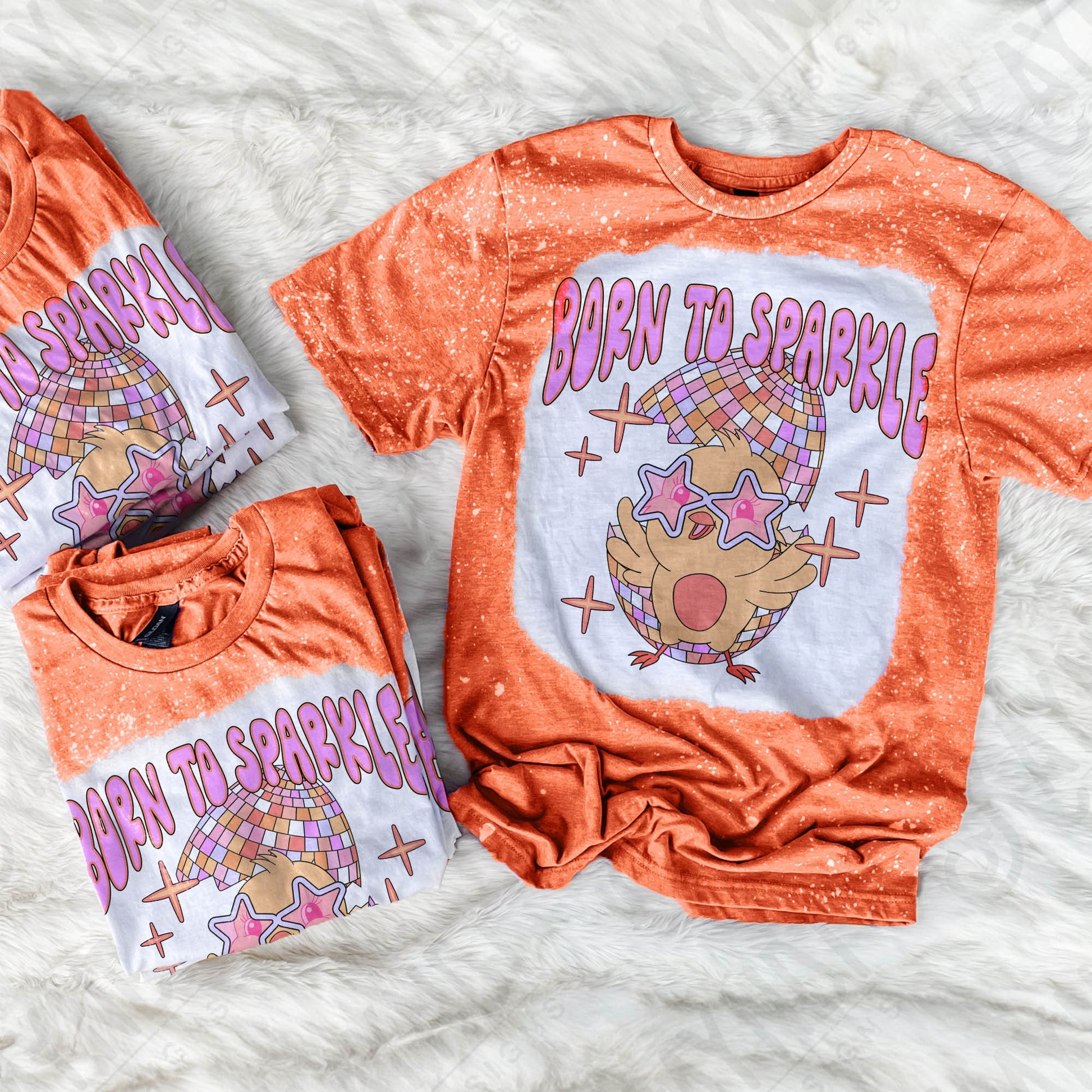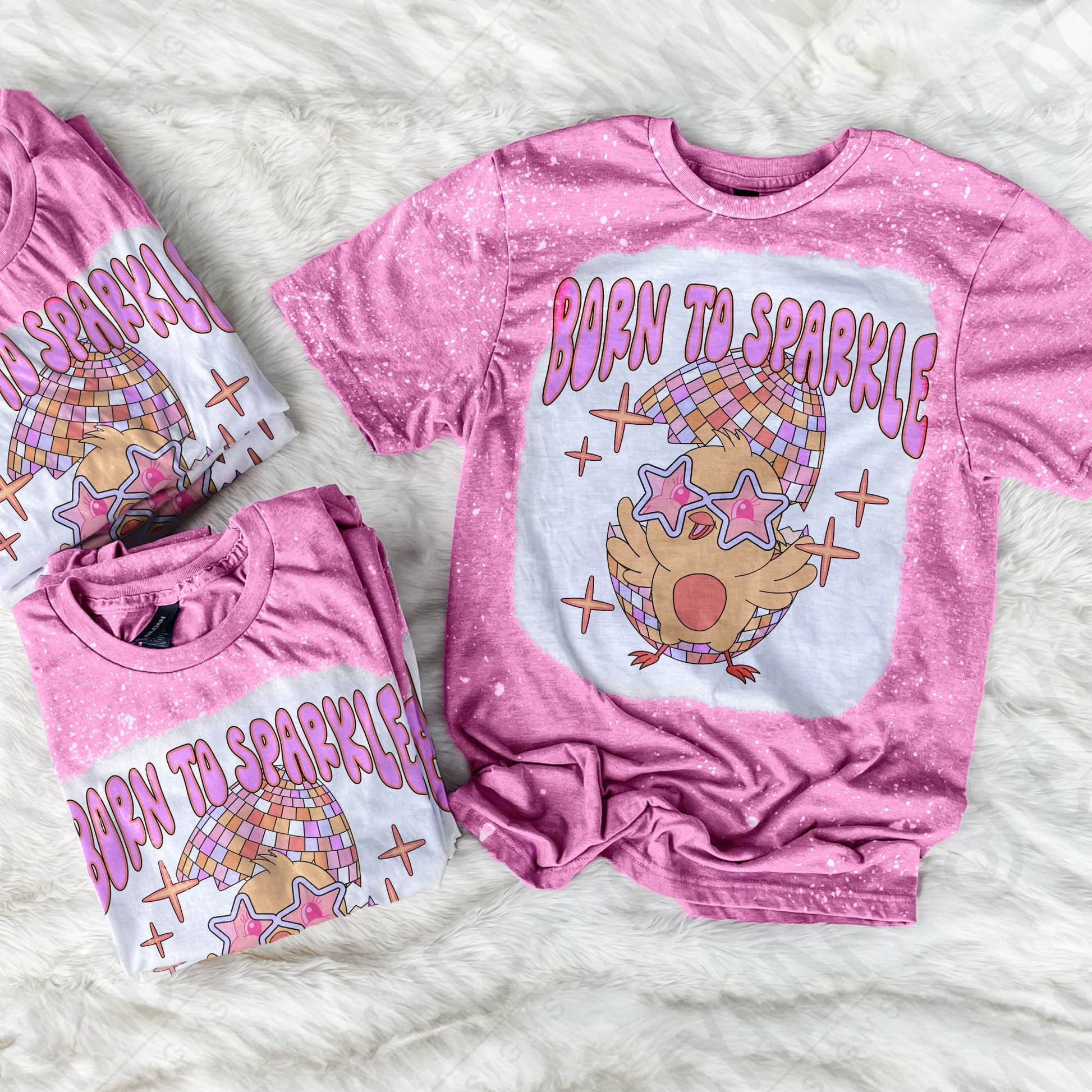 Born To Sparkle Sublimation Design PNG Digital Download Printable Disco Easter Egg Chick Chicken Stars Groovy Retro Girls Kids Cute Pink