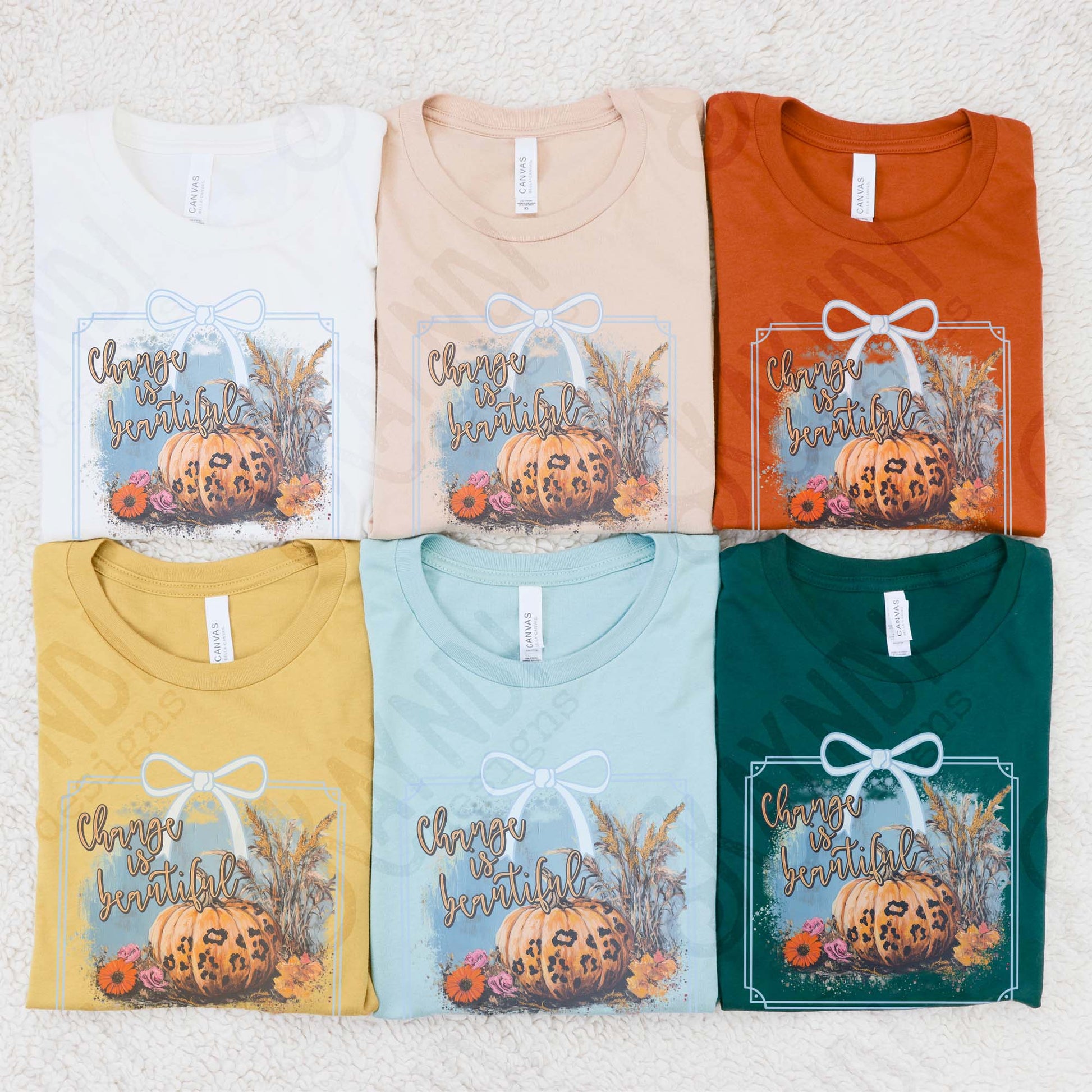 Change is Beautiful Sublimation Design PNG Digital Download Cheetah Pumpkins Fall Flowers
