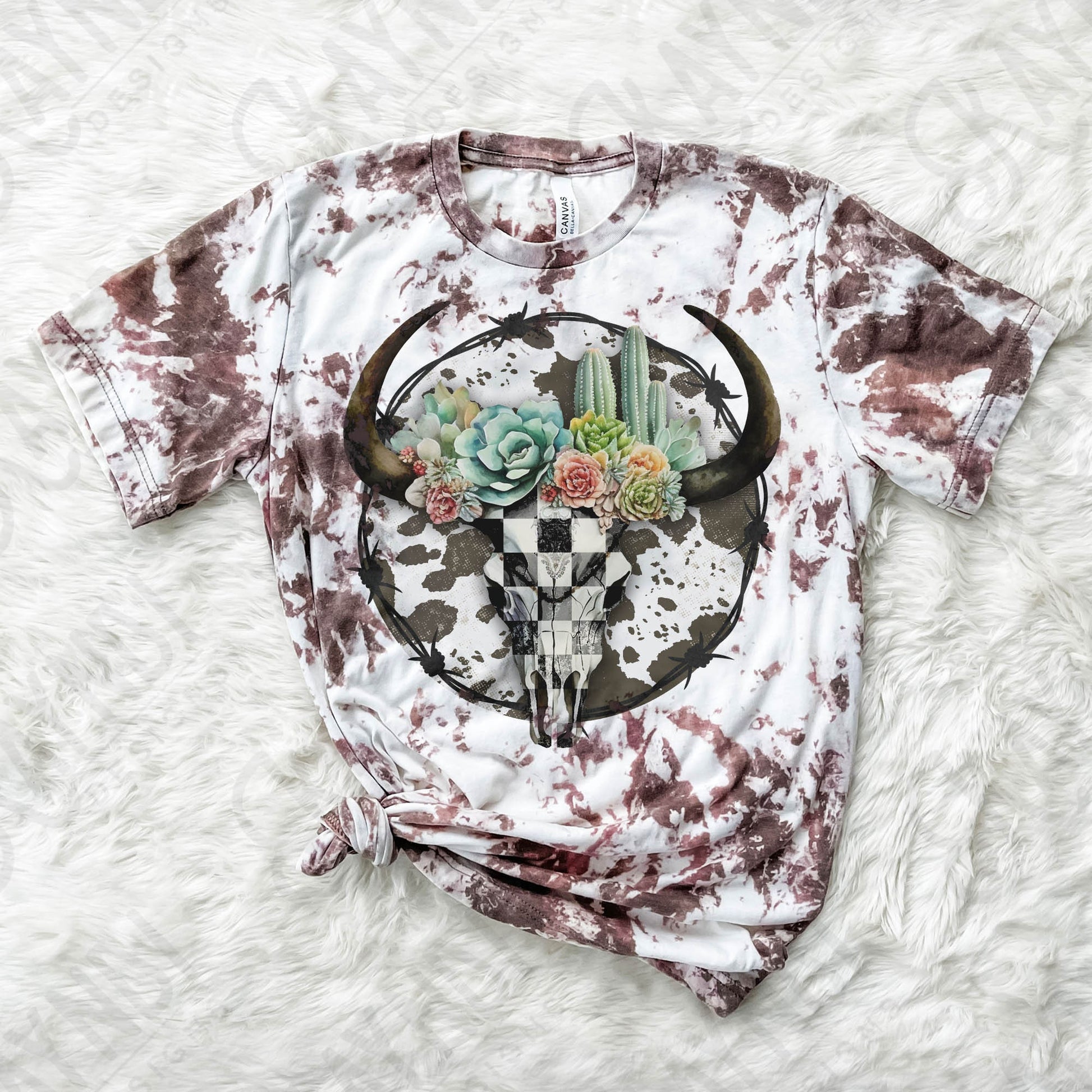 Checker Steer Skull Sublimation Design PNG Digital Download Printable Cowgirl Cowboy Western Cowprint Cactus Desert Succulent Barbwire Rodeo