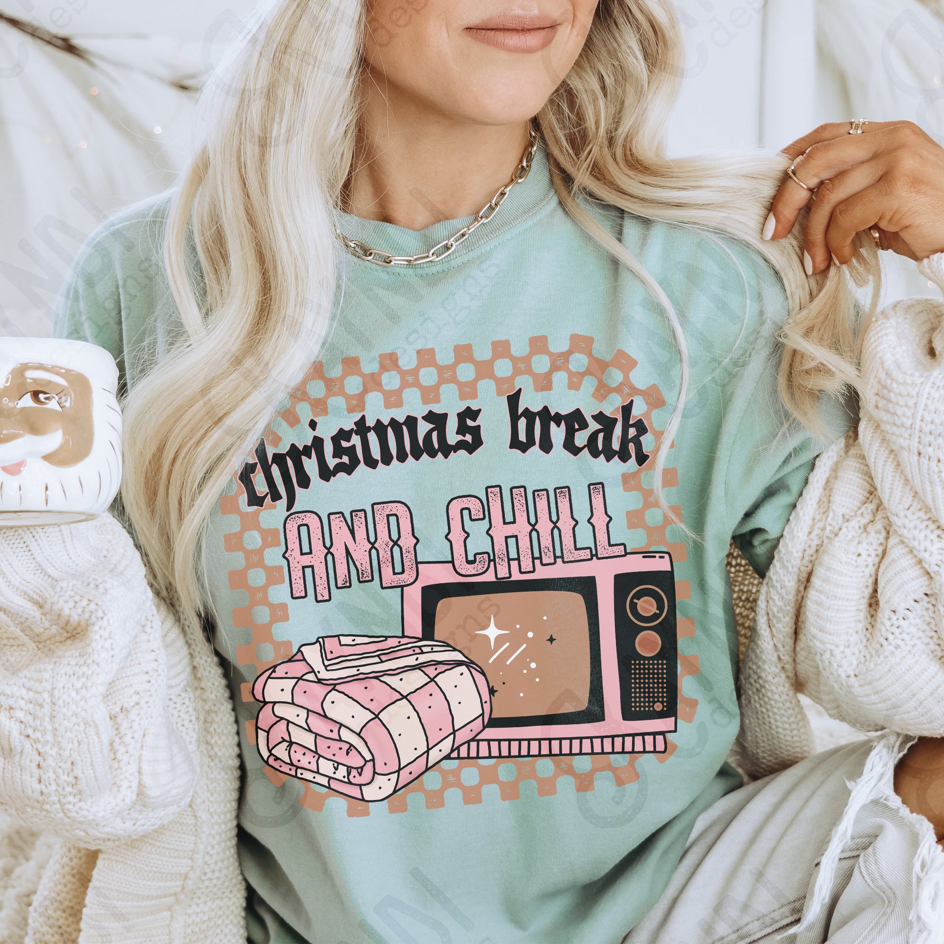 Christmas Break and Chill Pink Sublimation Design PNG Digital Download Printable Christmas Fun Blanket TV