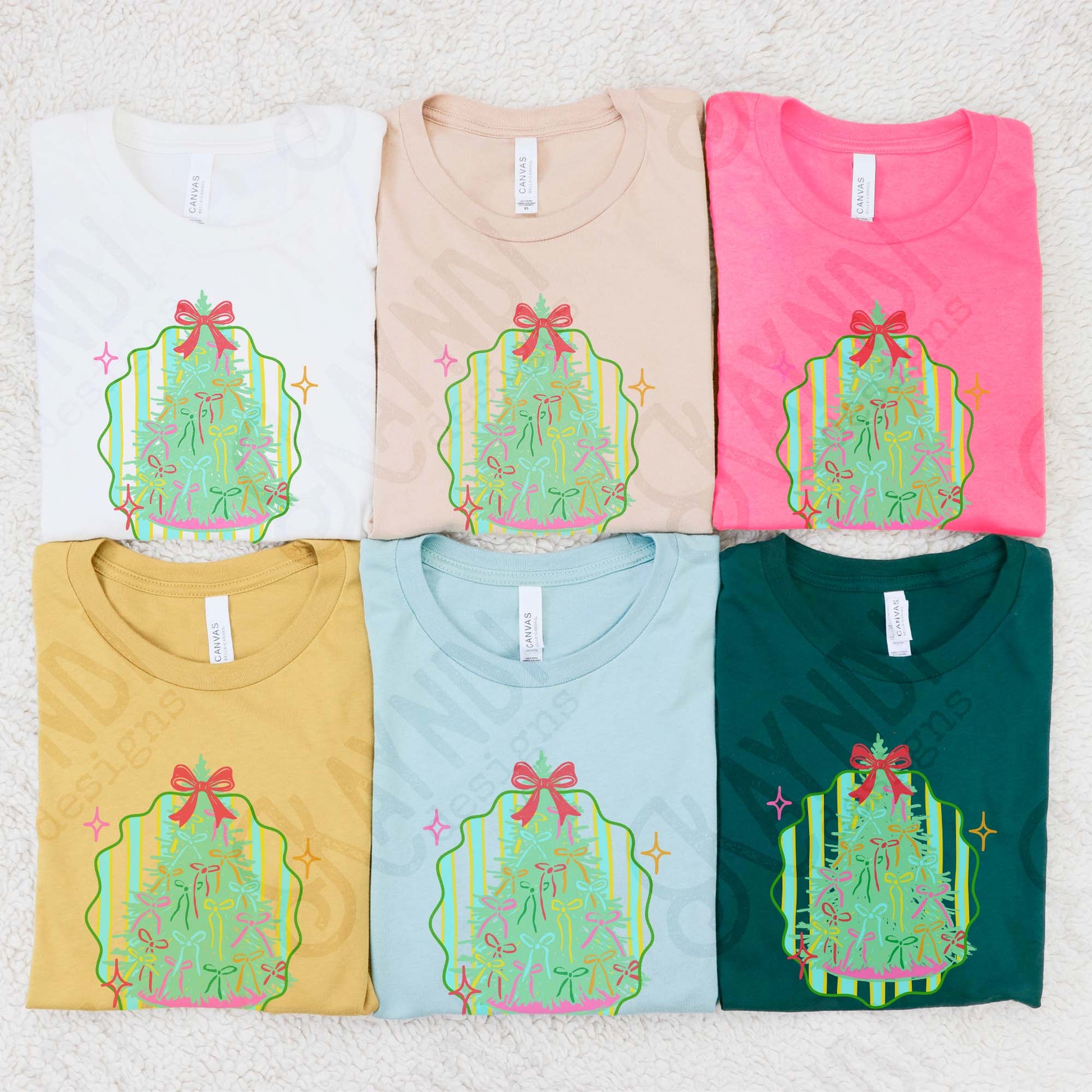 Christmas Tree Bow Sublimation Design PNG Digital Download Christmas Cute Stripes Bows Stars