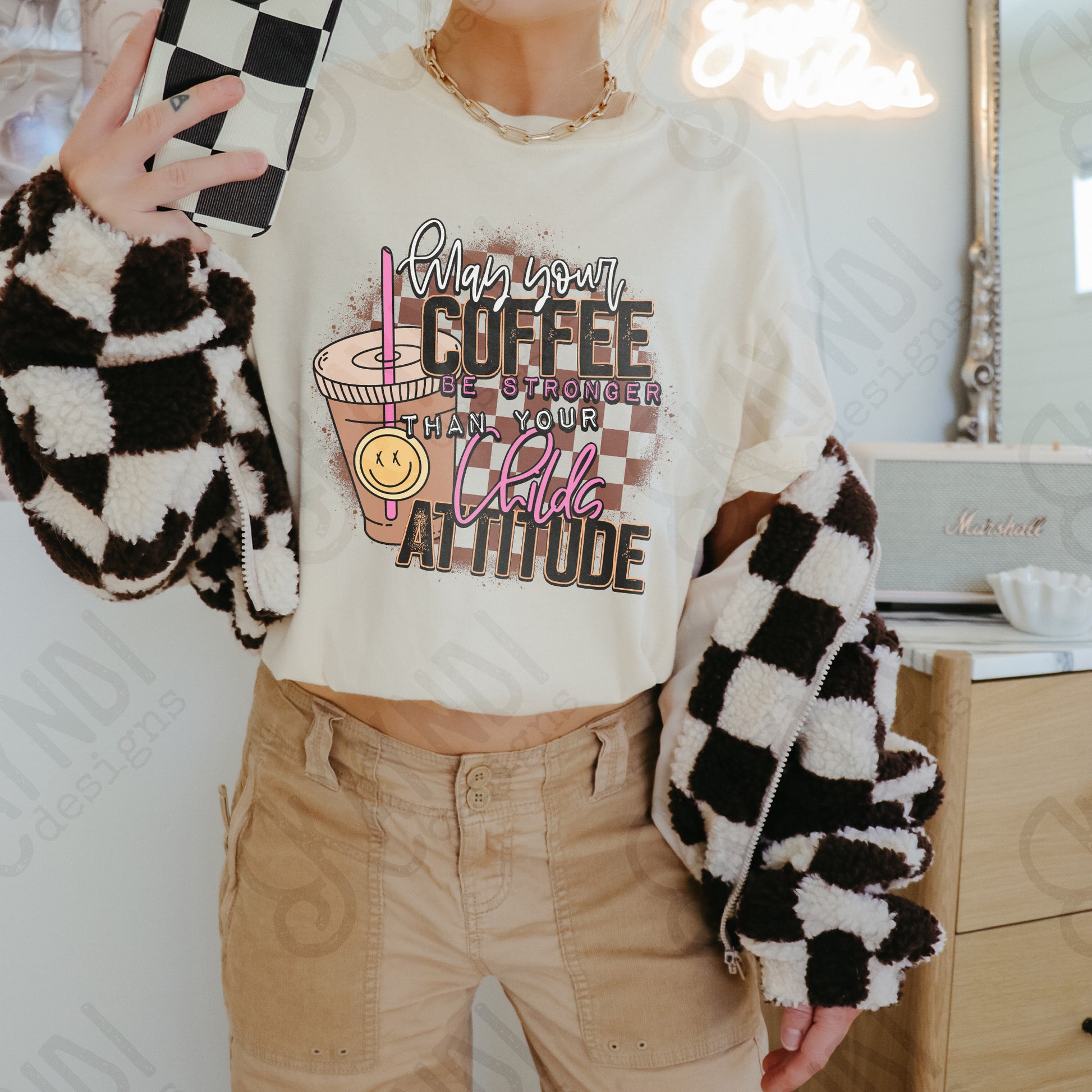 Coffee Be Stronger Than Your Childs Attitude Sublimation Design PNG Digital Download Printable Checkered Caffeine