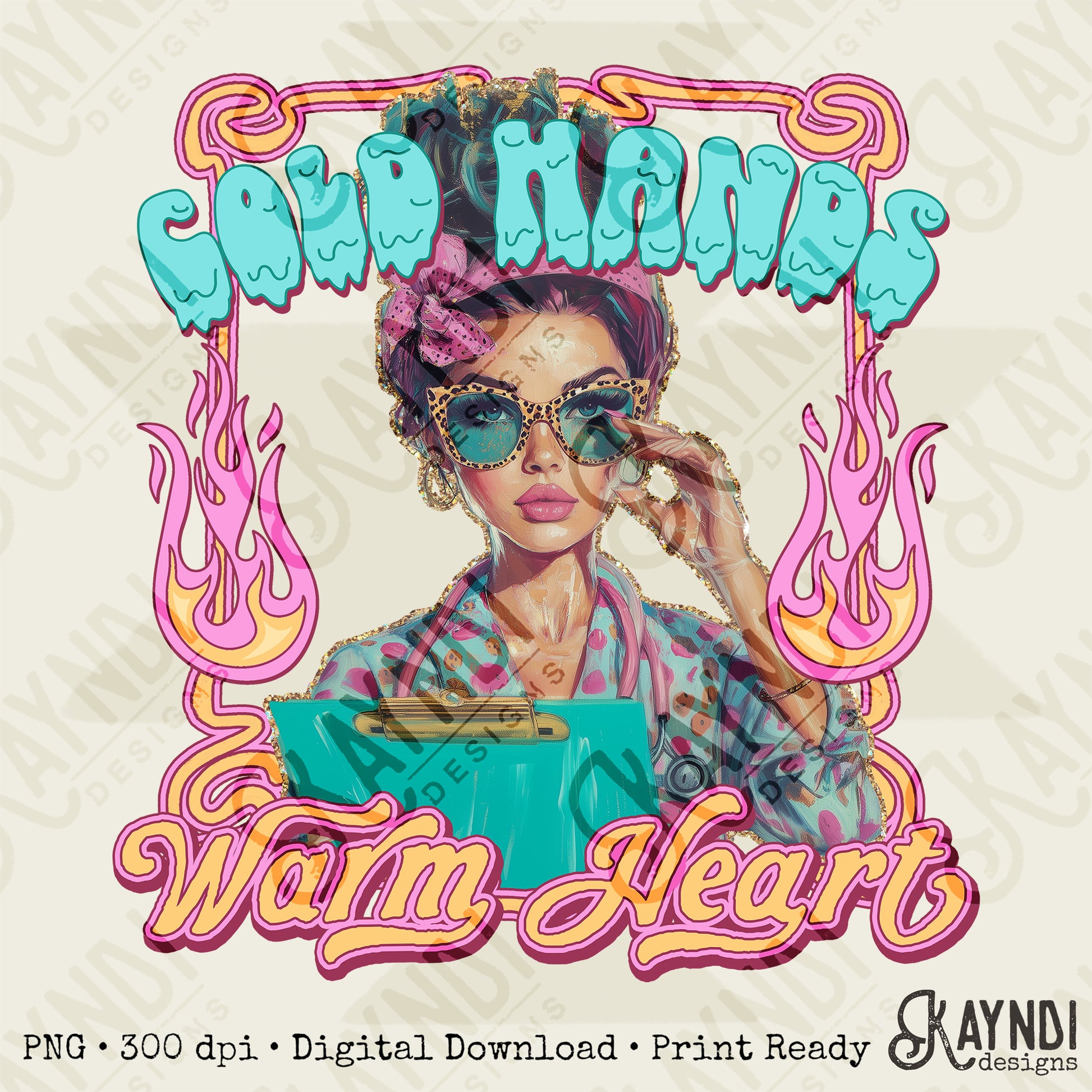 Cold Hands Warm Heart Sublimation Design PNG Digital Download Printable Nurse Sassy Flames