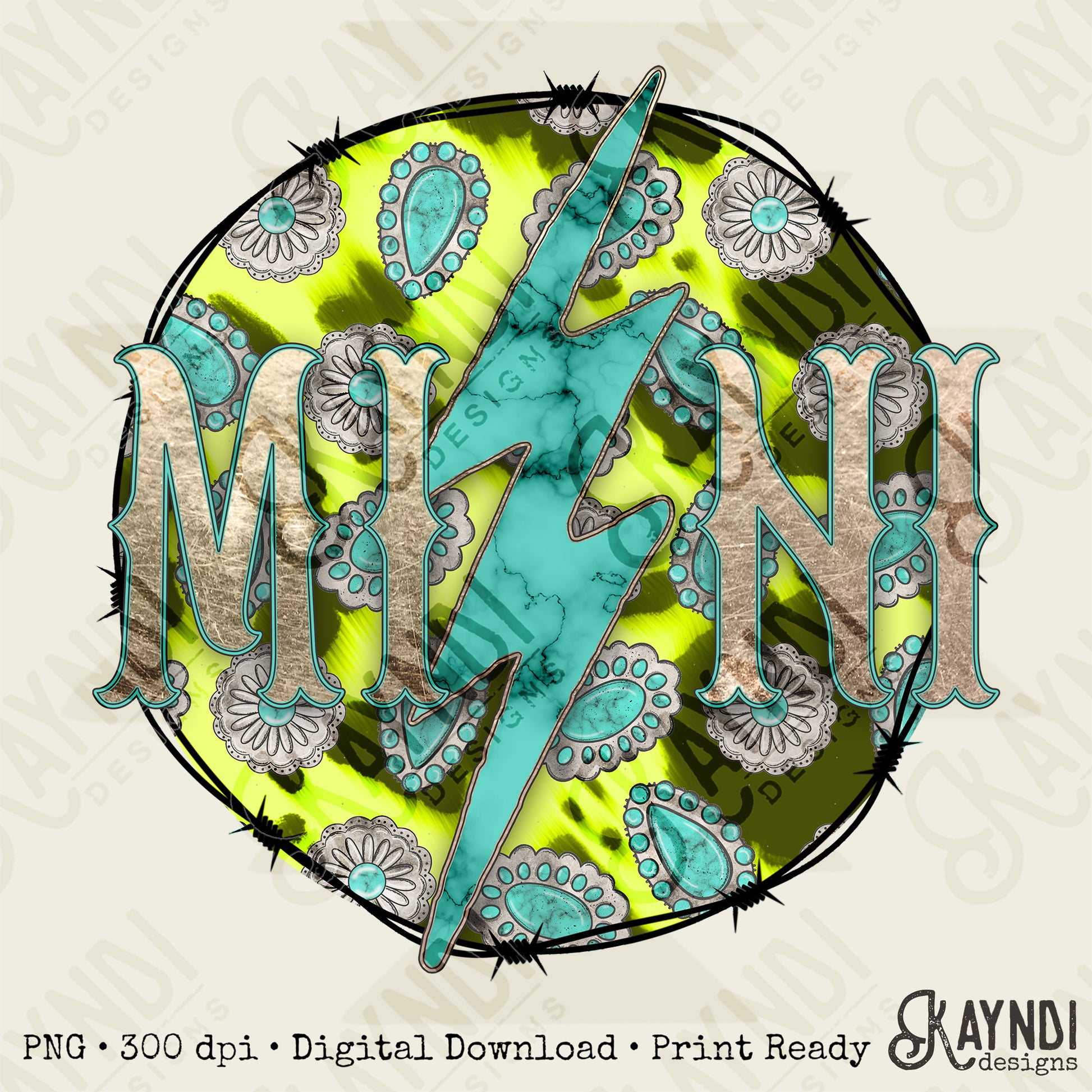 Concho Mini Green Sublimation Design PNG Digital Download Printable Turquoise Cow Print