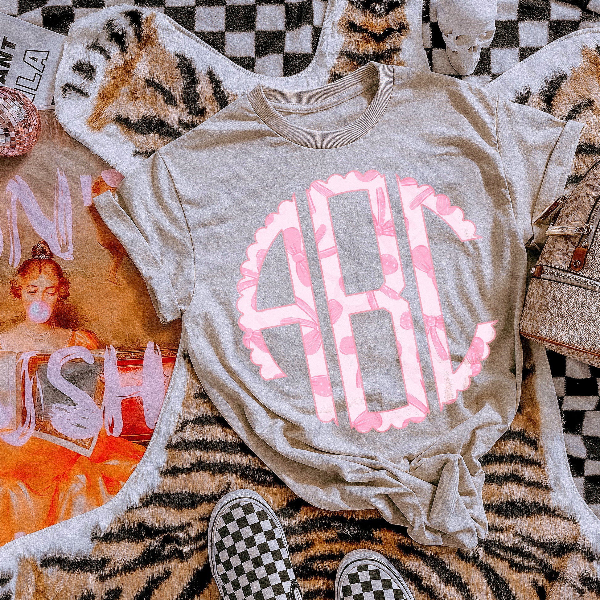 Coquette Charm Scalloped Monogram Set Sublimation Design PNG Digital Download Printable
