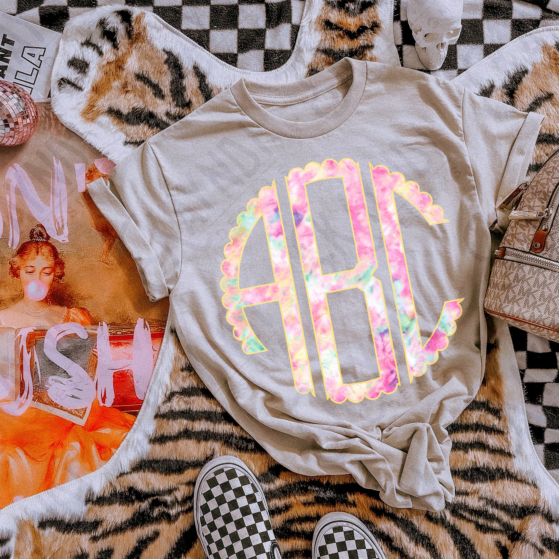 Cotton Candy Dreams Tie Dye Scalloped Monogram Set Sublimation Design PNG Digital Download Printable Preppy