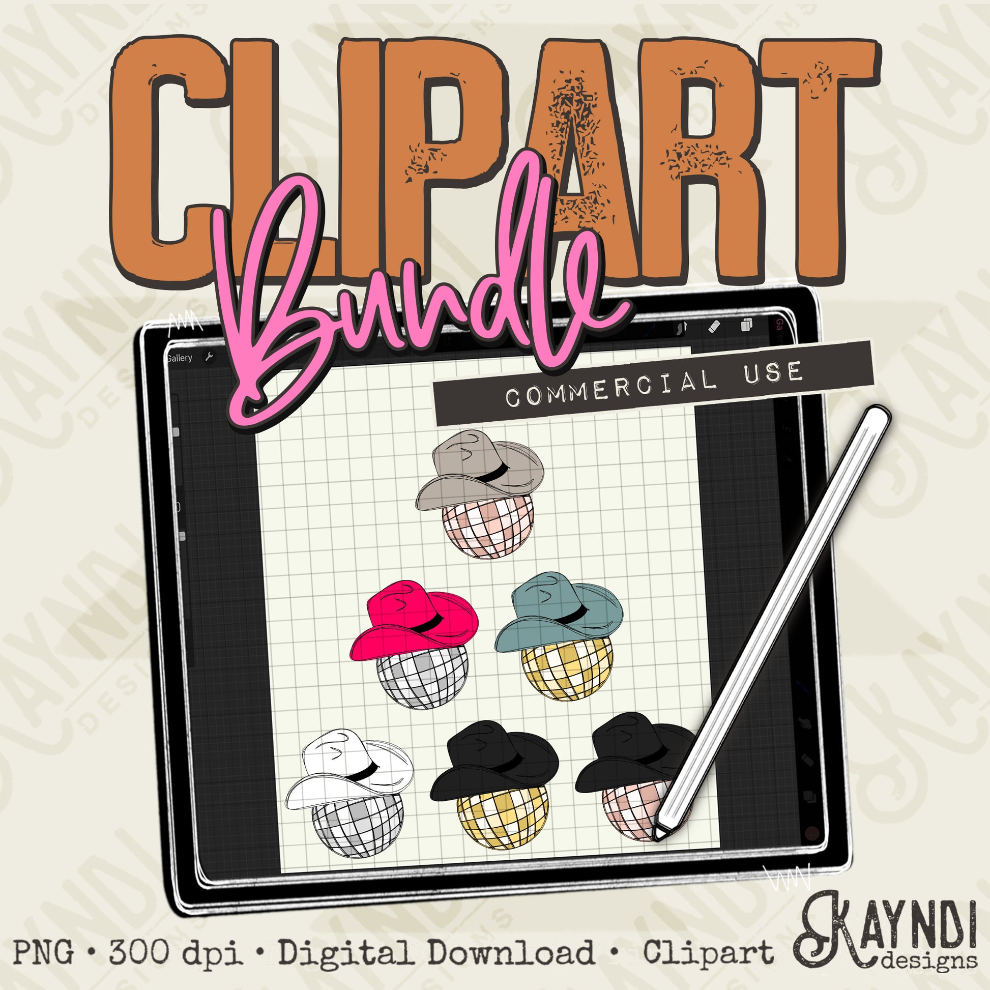 Cowboy Disco Balls Clipart Element Bundle PNG Digital Downloads Elements Fillers Commercial Use