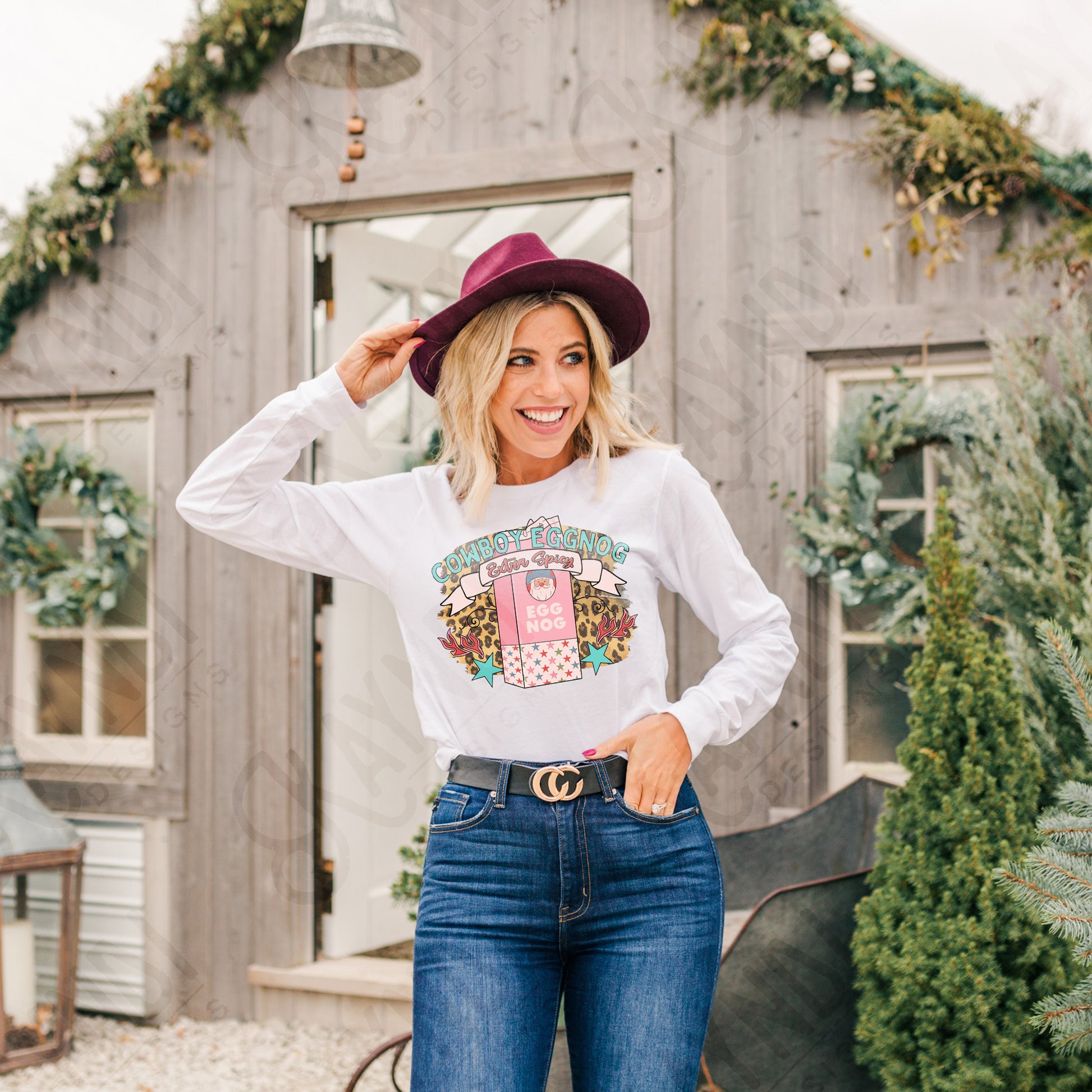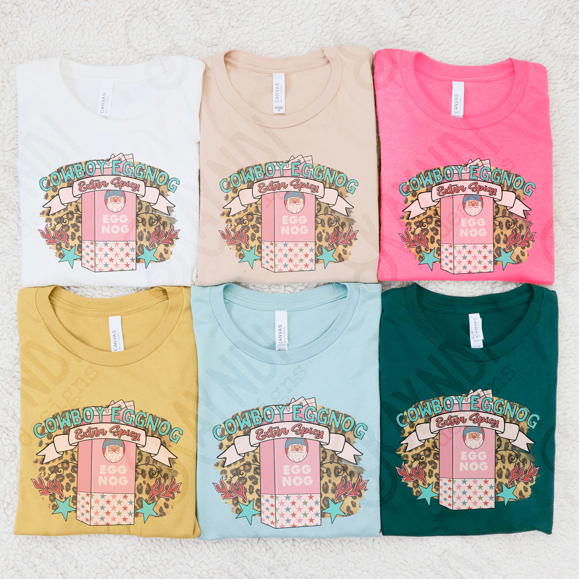 Cowboy Eggnog Extra Spicy PInk Sublimation Design PNG Digital Download Printable Vintage Christmas Retro