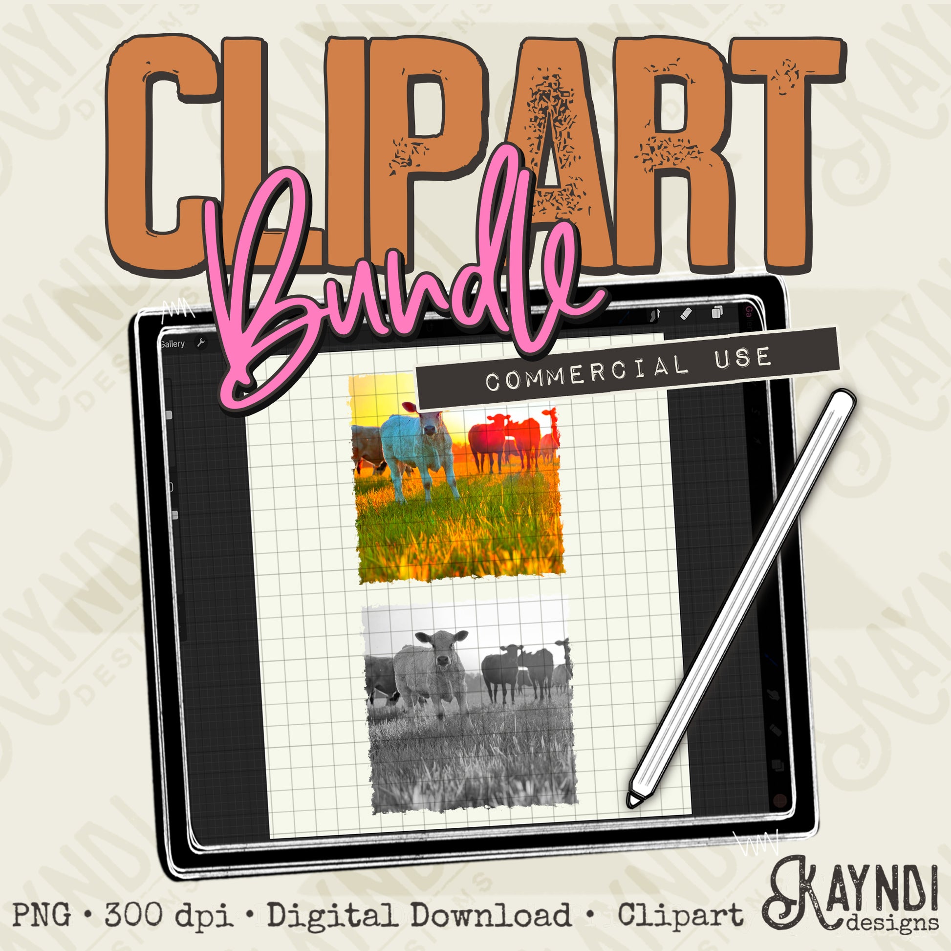 Cows 6 Bundle PNG Digital Downloads Elements Commercial Use Bovine Farm
