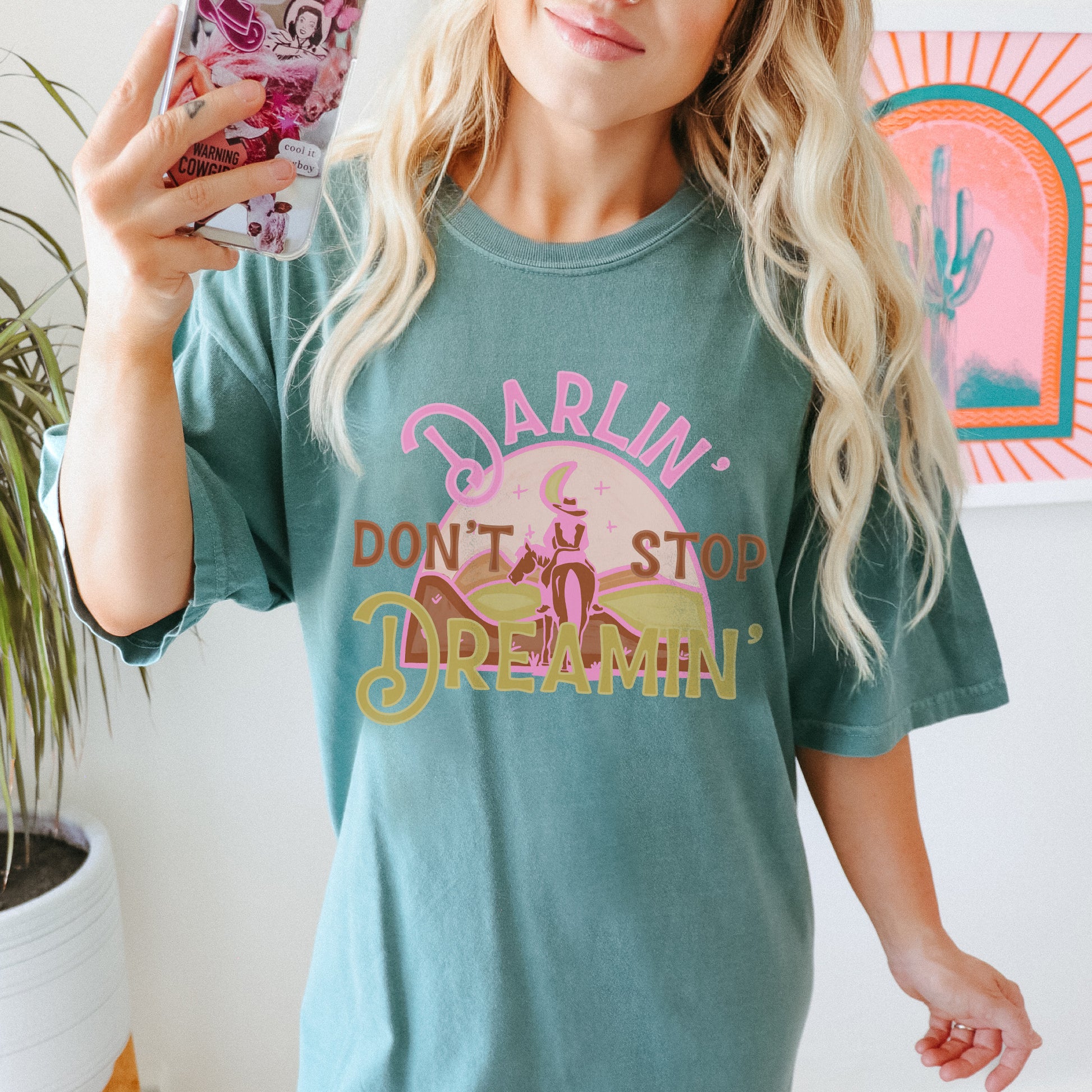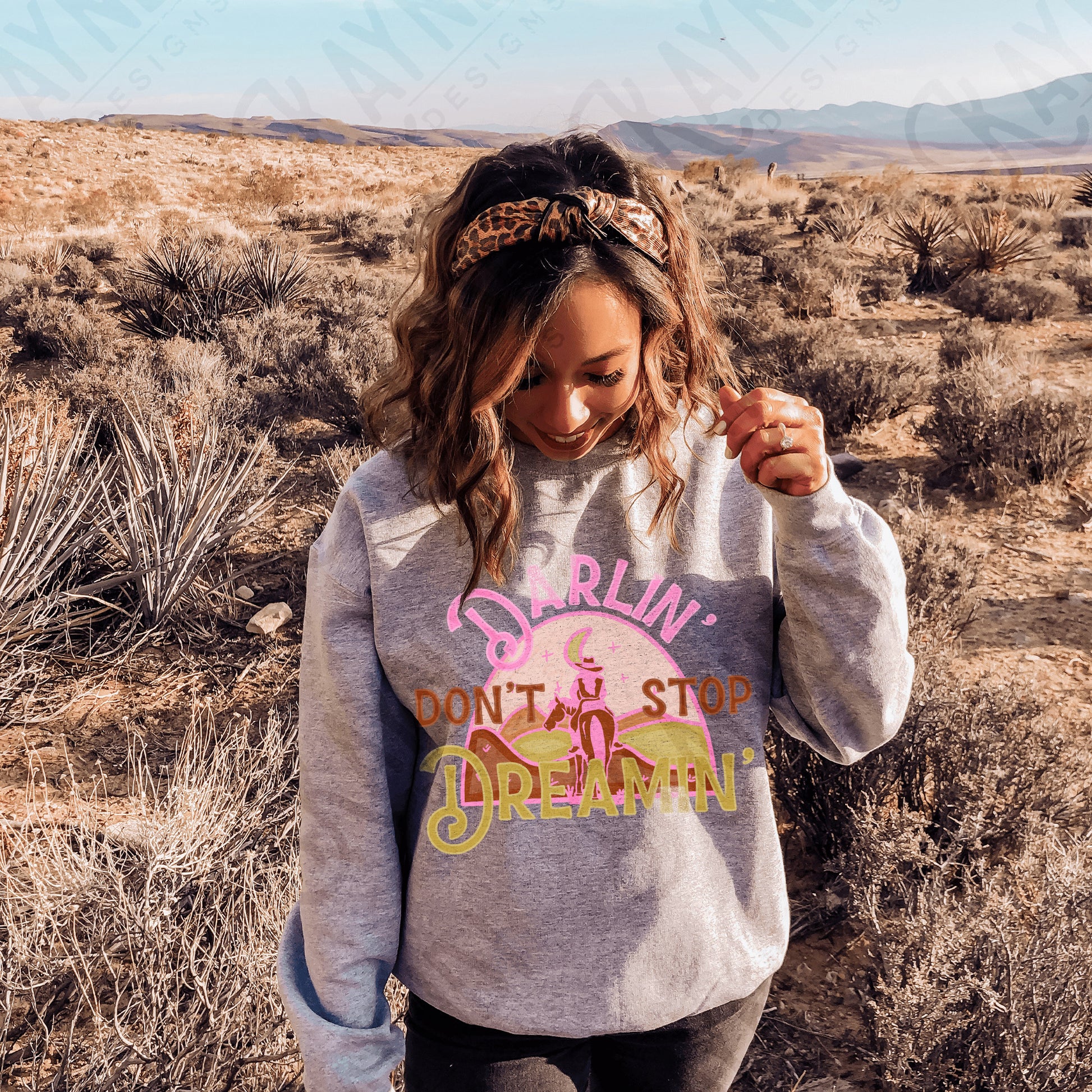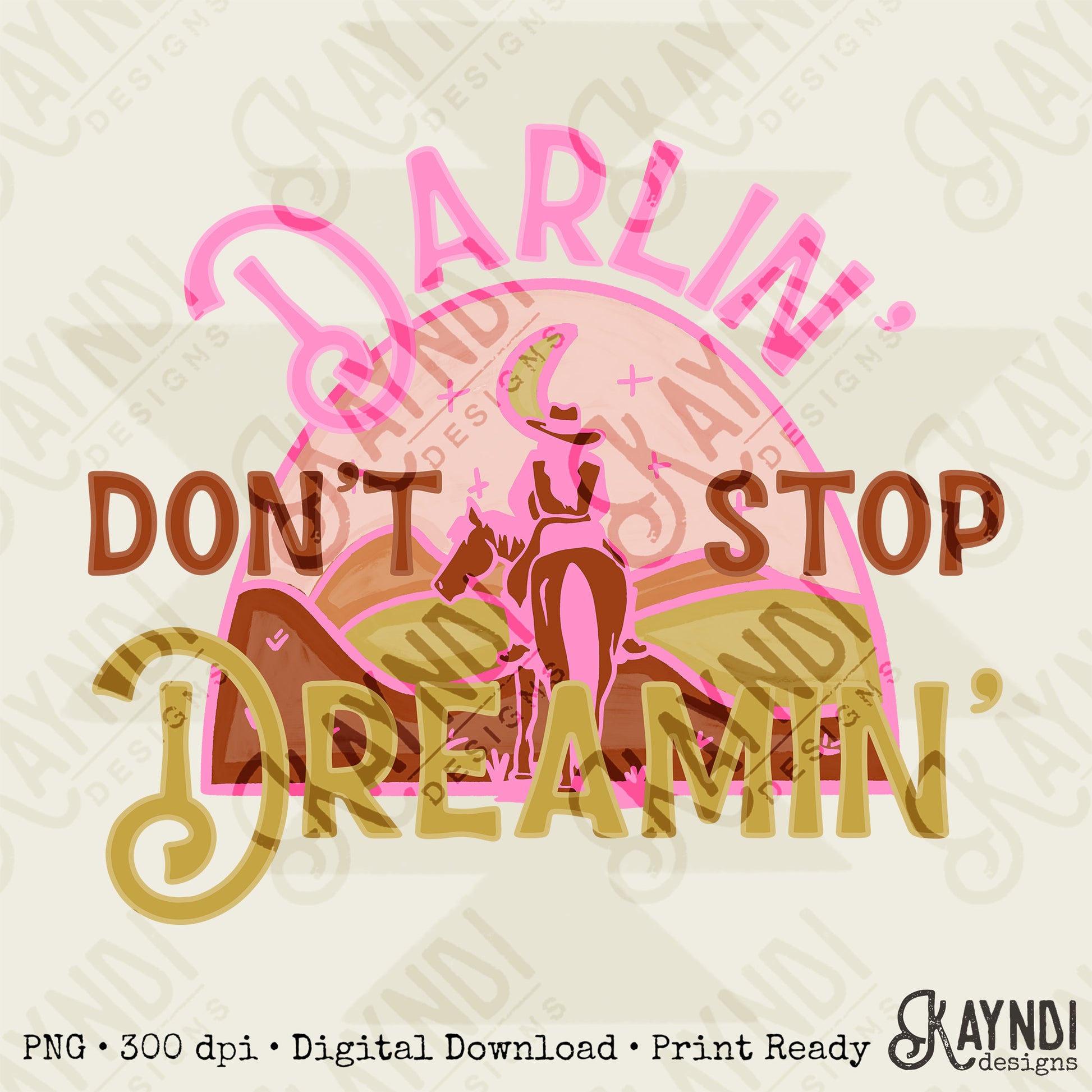 Darlin Don't Stop Dreamin Sublimation Design PNG Digital Download Printable Western Girly Cowgirl Horseback