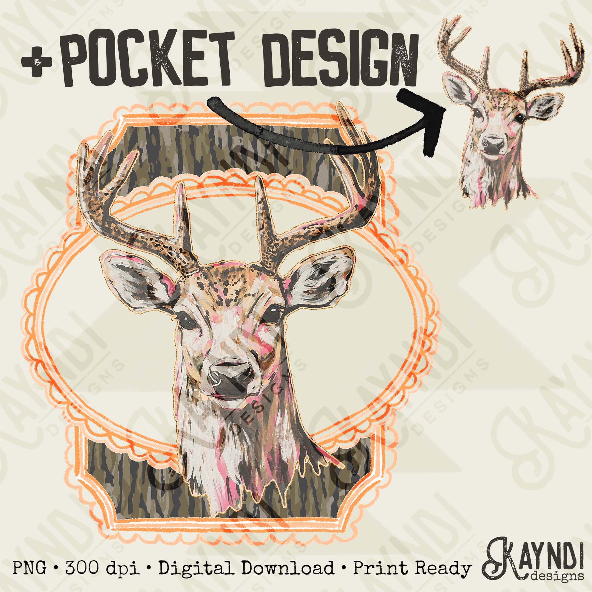Deer Camo Sublimation Design PNG Digital Download Printable Vintage Pocket Design Hunting