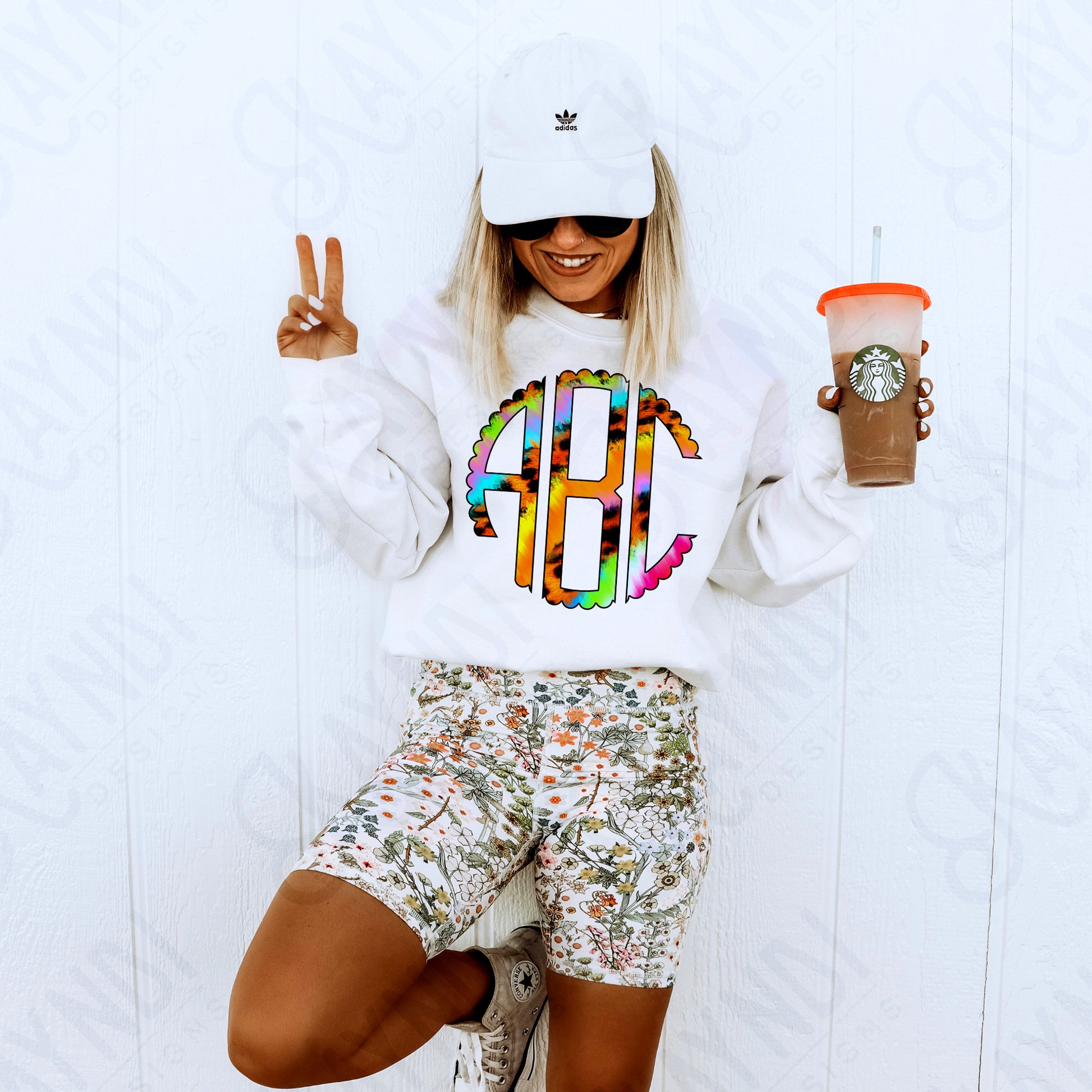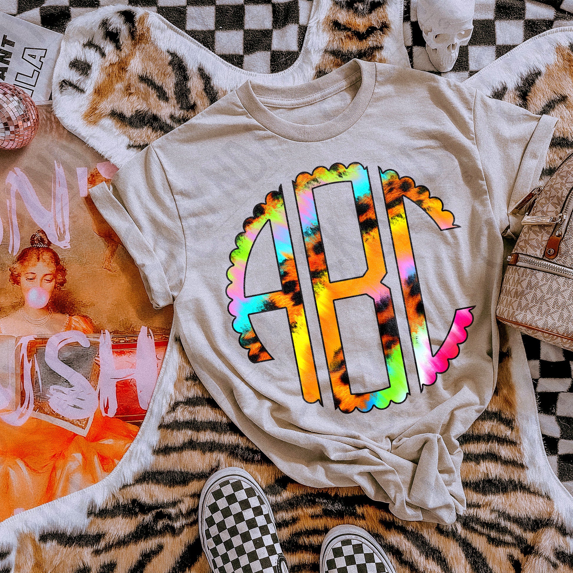 Electric Cheetah Scalloped Monogram Set Sublimation Design PNG Digital Download Printable