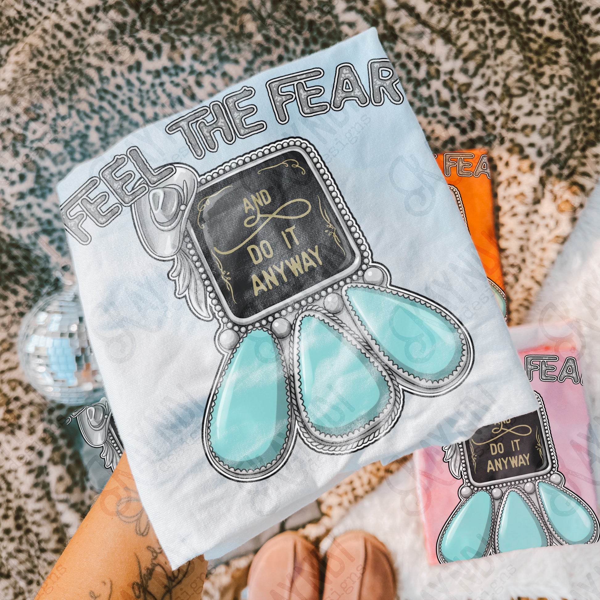 Feel the Fear Sublimation Design PNG Digital Download Turquoise Western