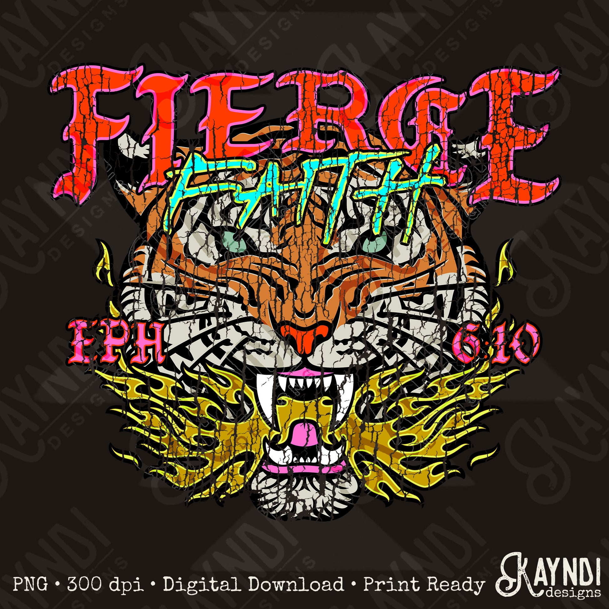 Fierce Faith Tiger Distressed Fierce Faith Collab Design Sublimation Design PNG Digital Download Printable Cute Rock Band Jesus Skull Goth Grunge