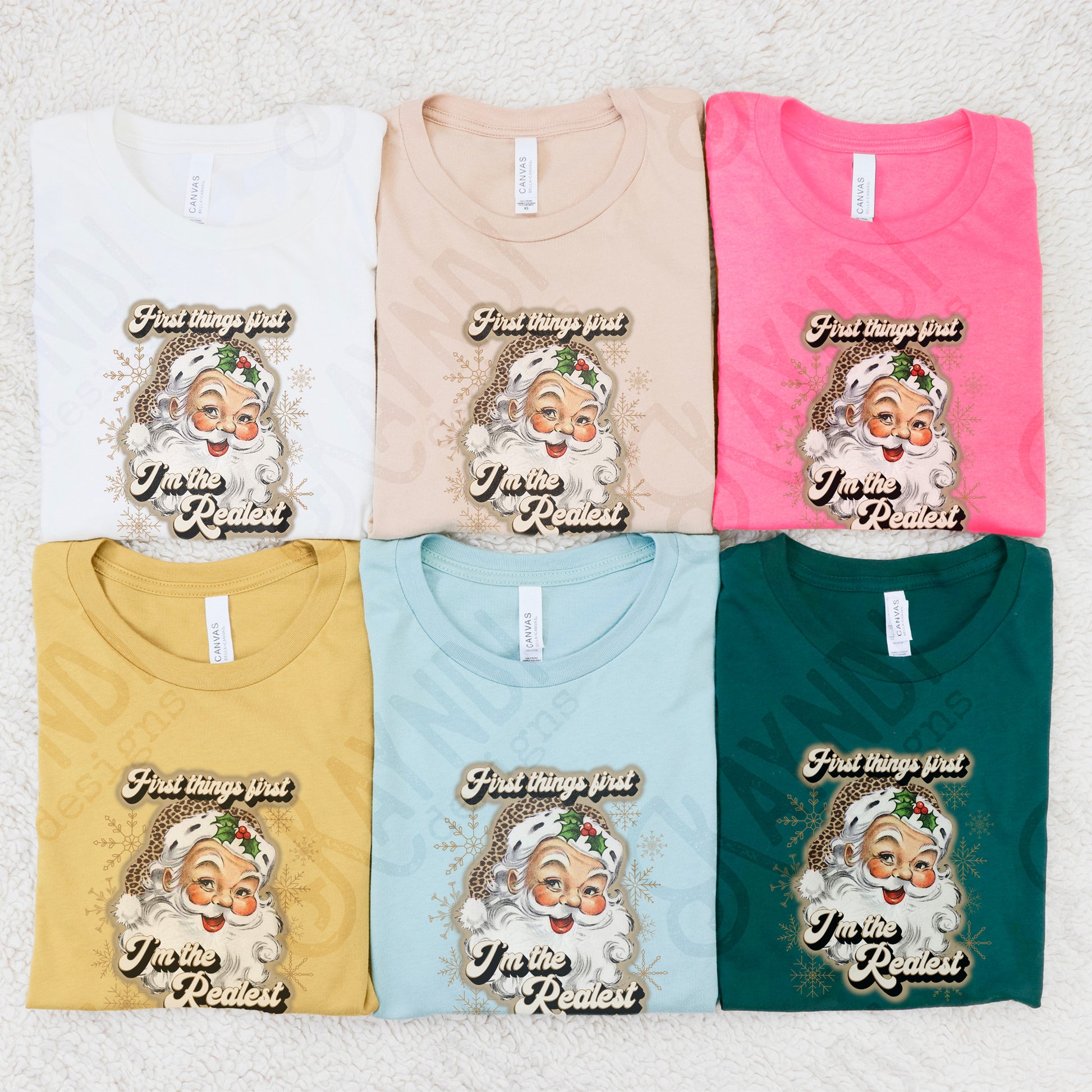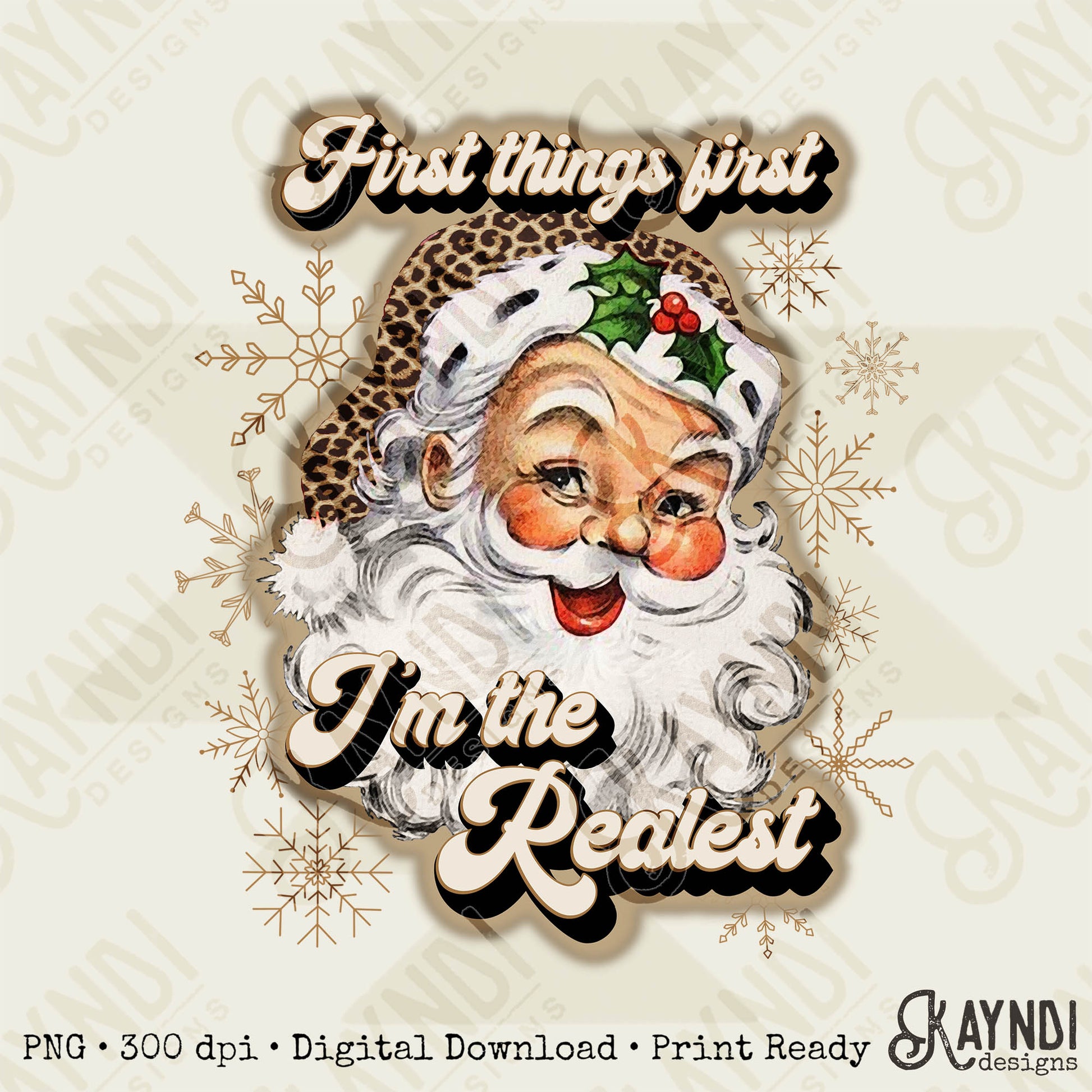 First Things First Im The Realest Santa Sublimation Design PNG Digital Download Printable Leopard Cheetah Beige Snowflakes