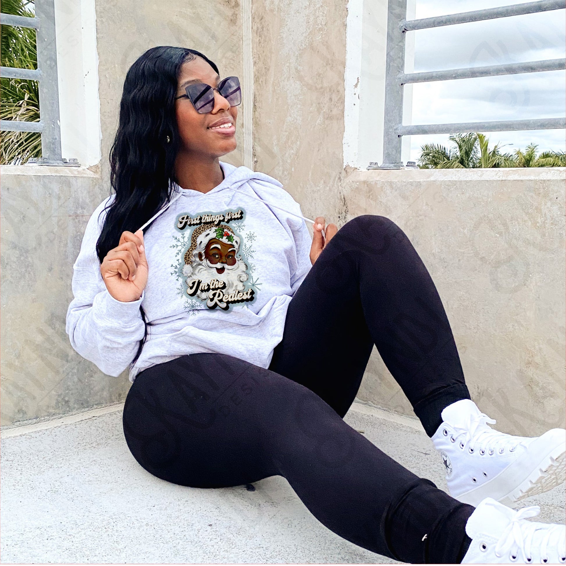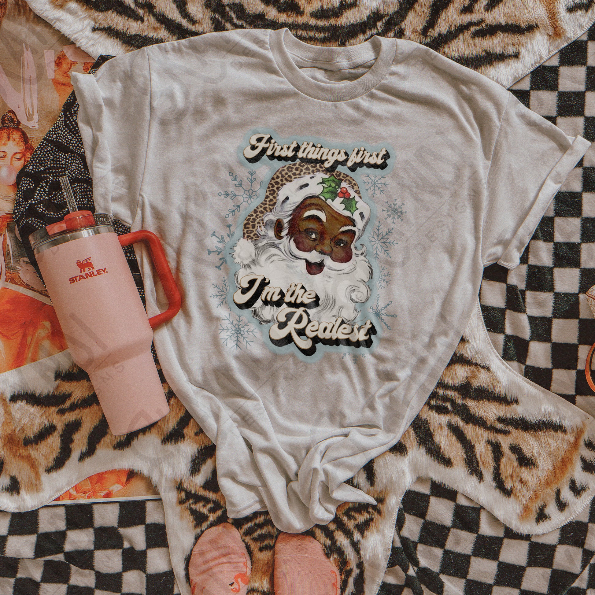 First Things First Im The Realest Santa Sublimation Design PNG Digital Download Printable Leopard Cheetah Blue Snowflakes African American