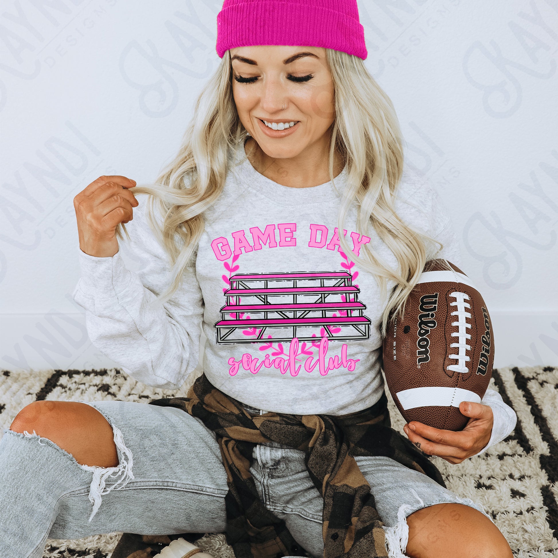 Game Day Social Pink Sublimation Design PNG Digital Download Printable Bleachers School Spirit