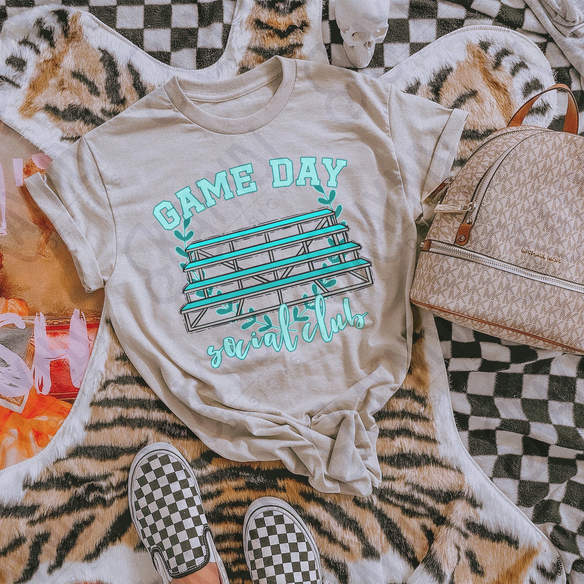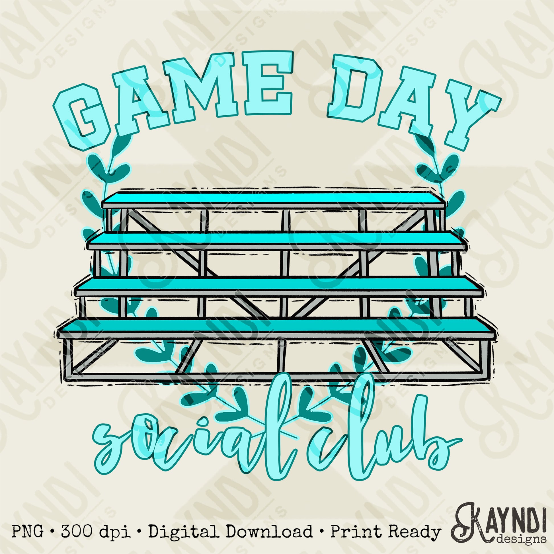 Game Day Social Teal Sublimation Design PNG Digital Download Printable Bleachers School Spirit