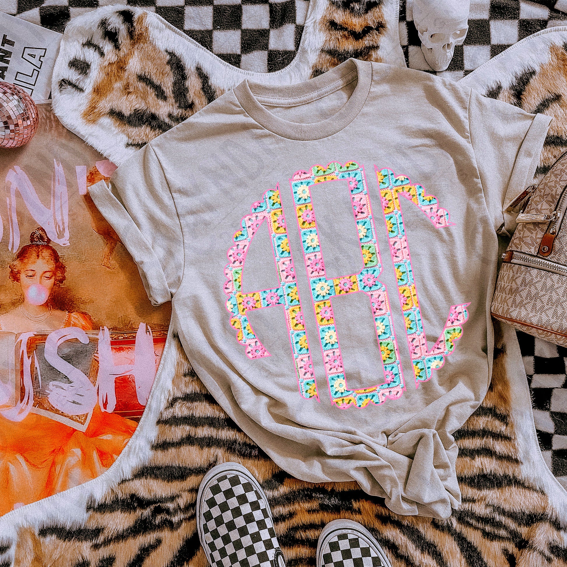 Granny's Flower Patch Scalloped Monogram Set Sublimation Design PNG Digital Download Printable Crochet Knit Floral