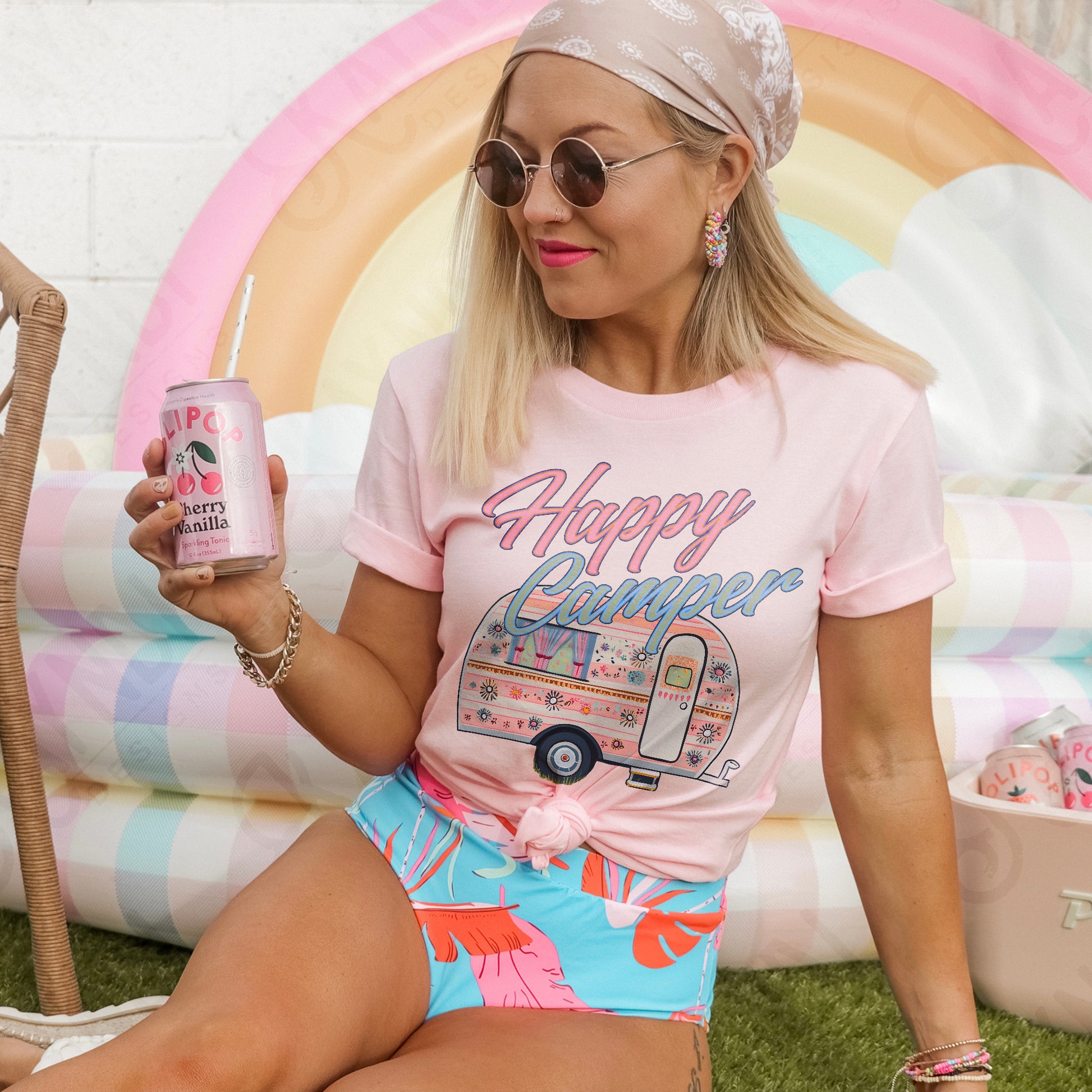 Happy Camper Sublimation Design PNG Digital Download Printable Vintage Summer Camping RV