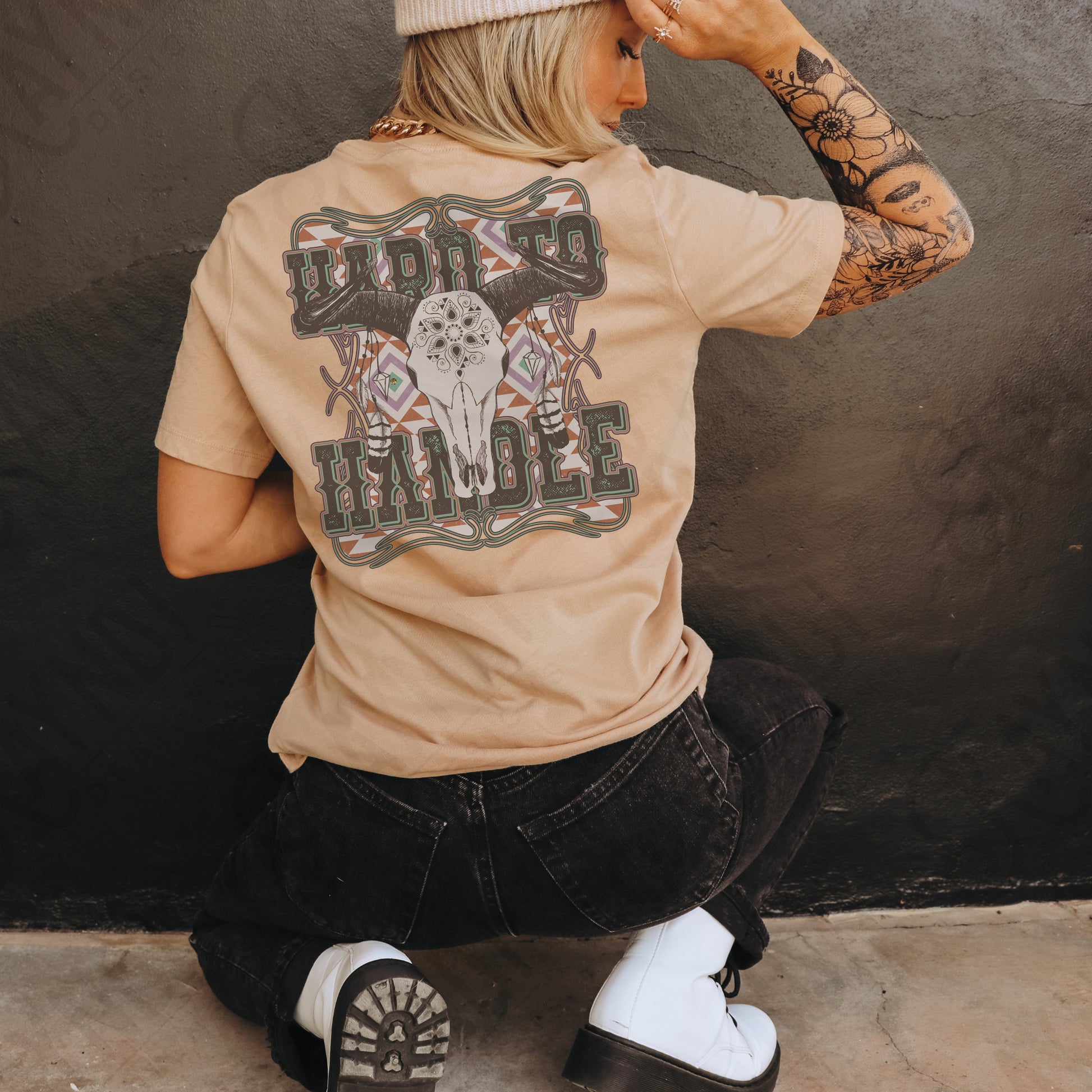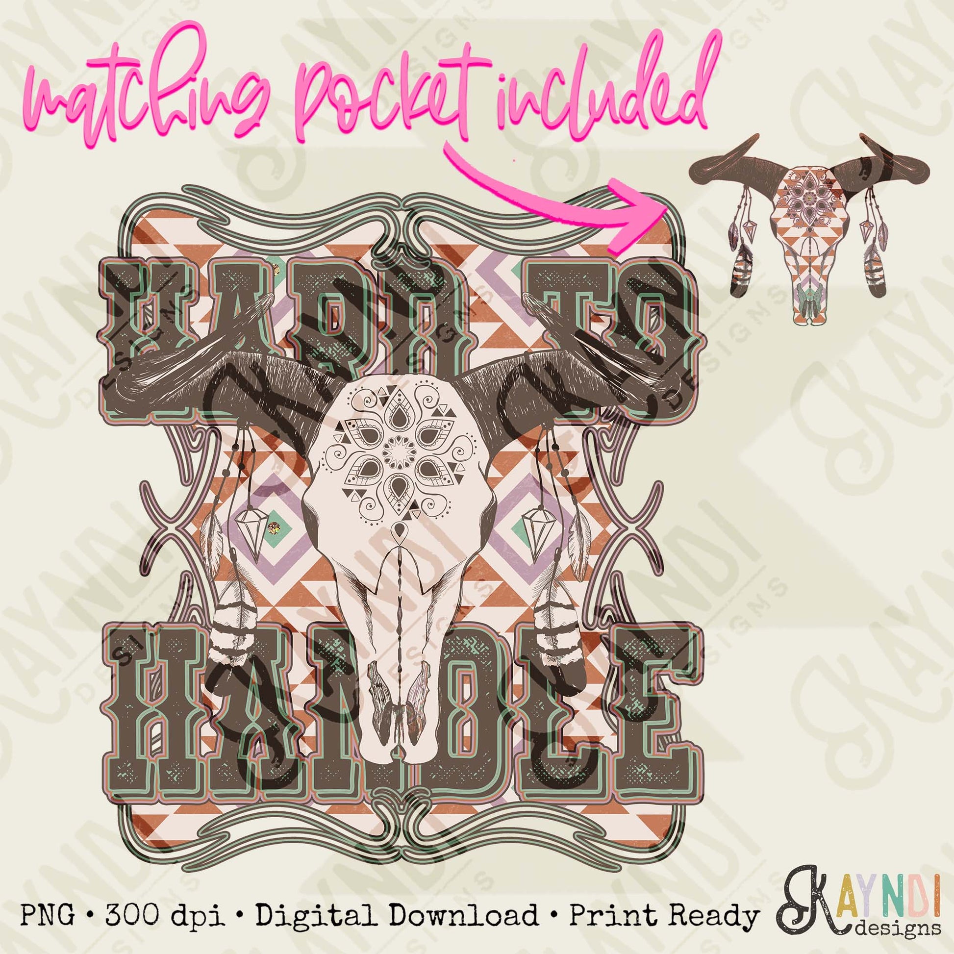 Hard to Handle Sublimation Design PNG Digital Download Printable Western Bull Skull