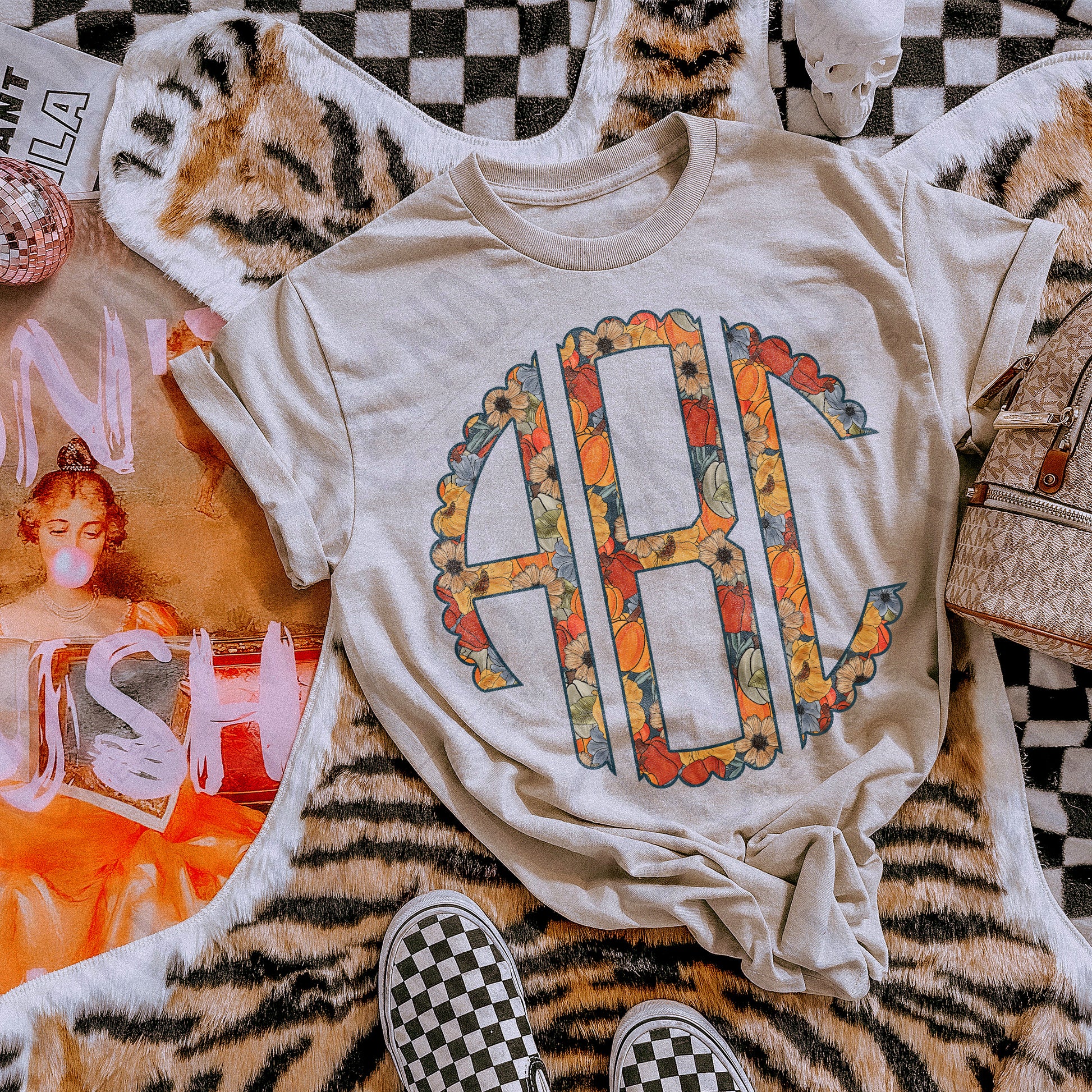 Harvest Blooms Scalloped Monogram Set Sublimation Design PNG Digital Download Printable