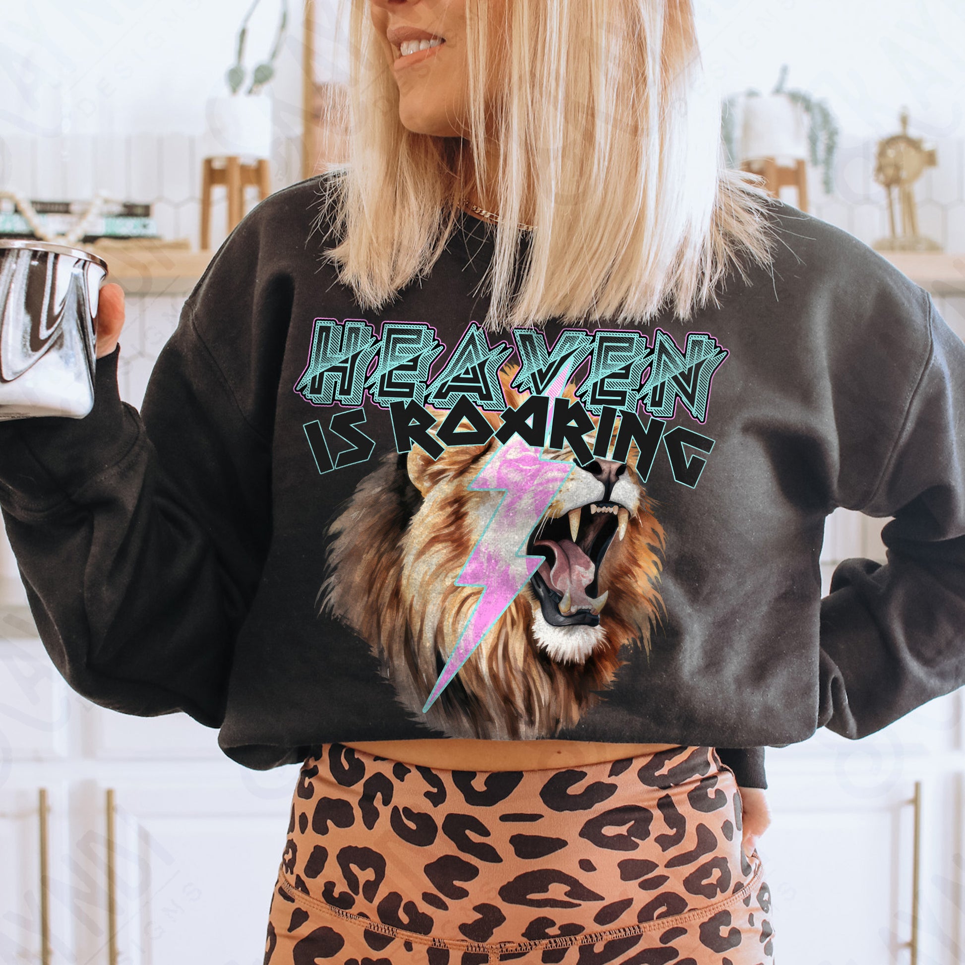 Heaven is Roaring Black Fierce Faith Collab Design Sublimation Design PNG Digital Download Printable Cute Rock Band Jesus Lion Bolt Goth Grunge