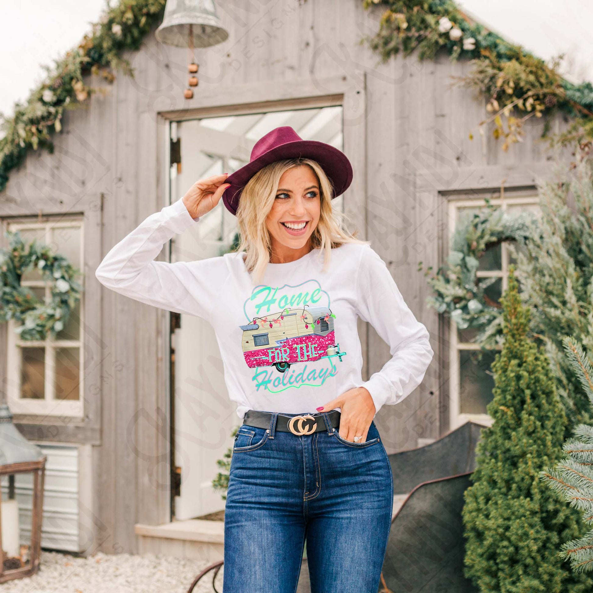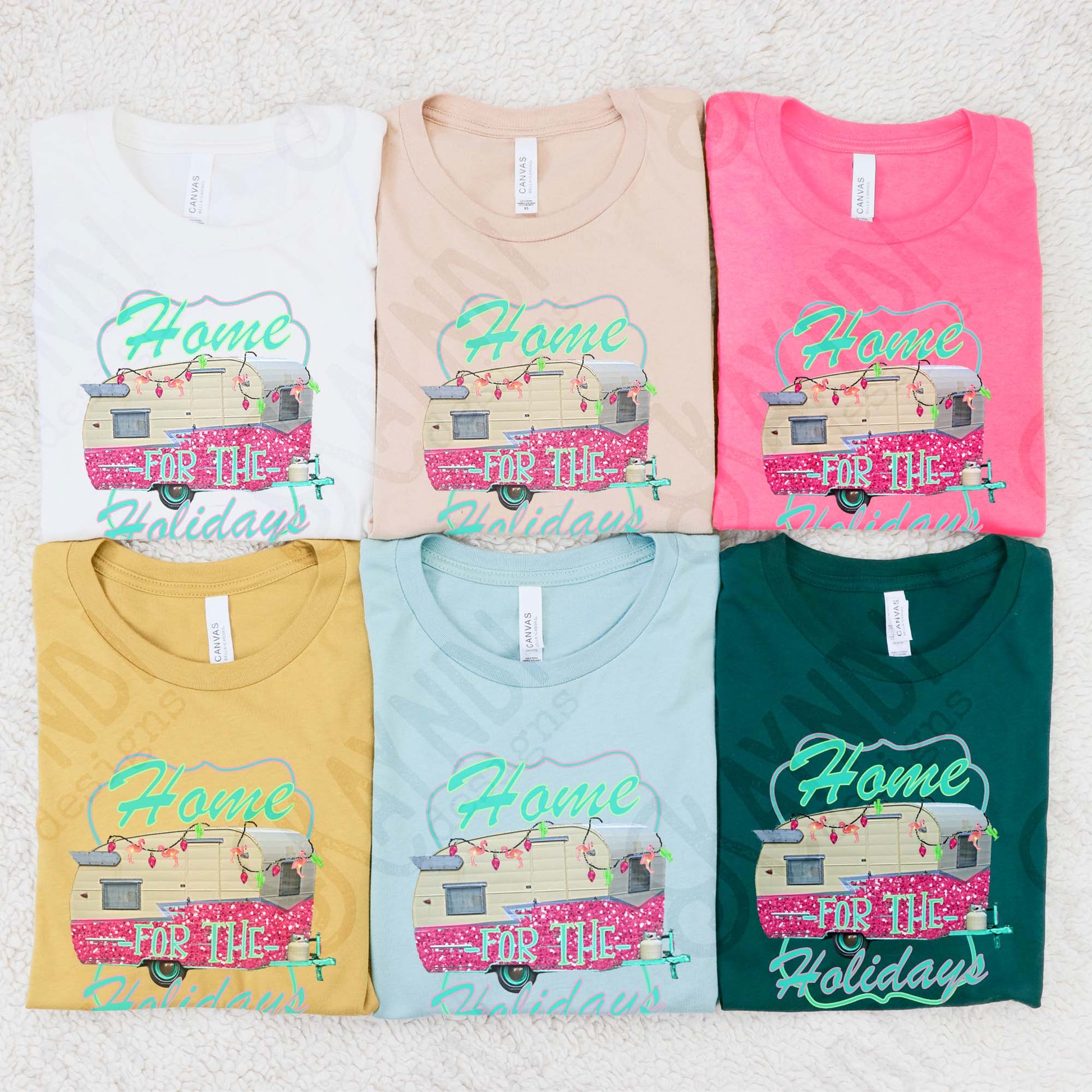Home for the Holidays Sublimation Design PNG Digital Download Christmas Camper Lights