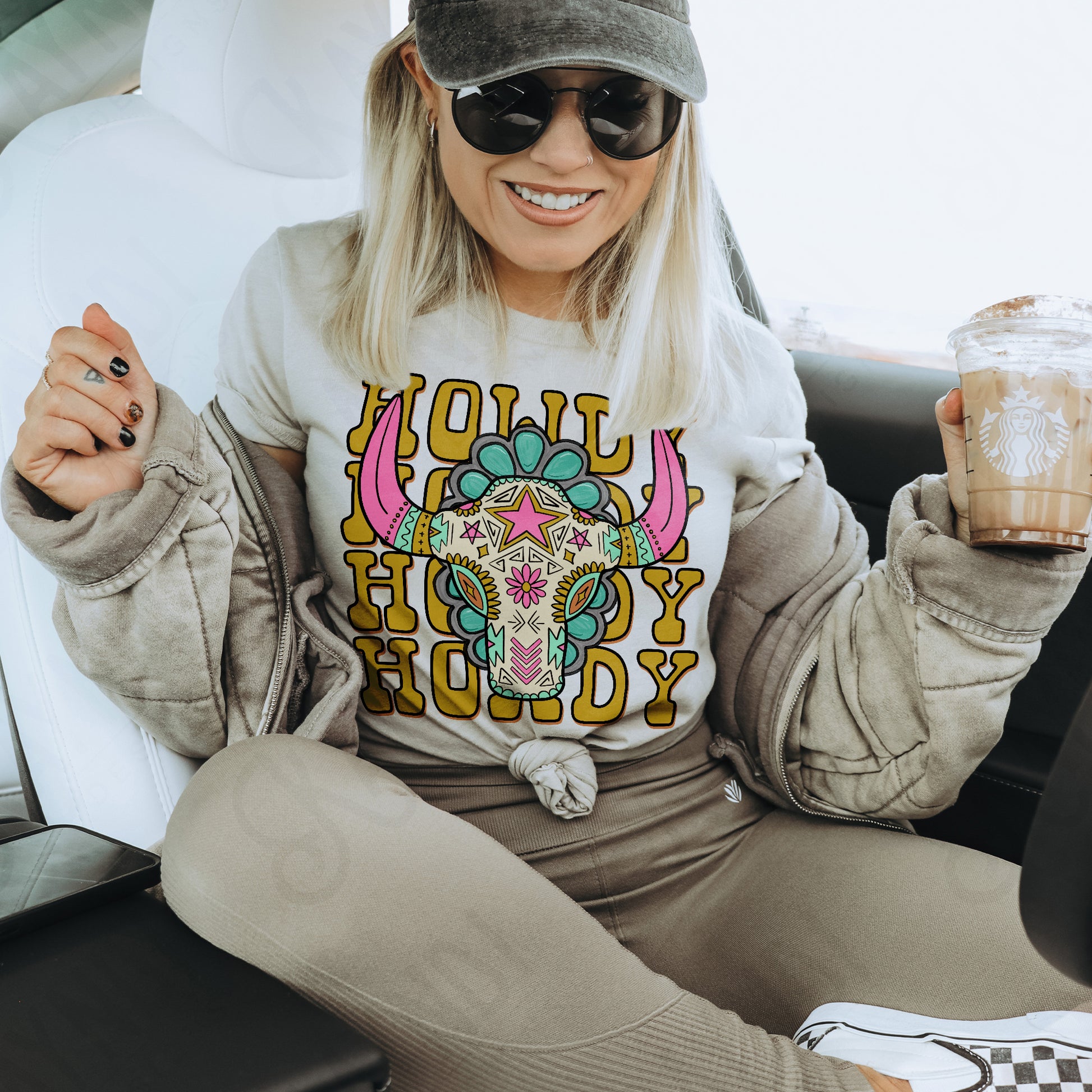 Howdy Boho Steer Sublimation Design PNG Digital Download Printable Western Girly Pocket Design