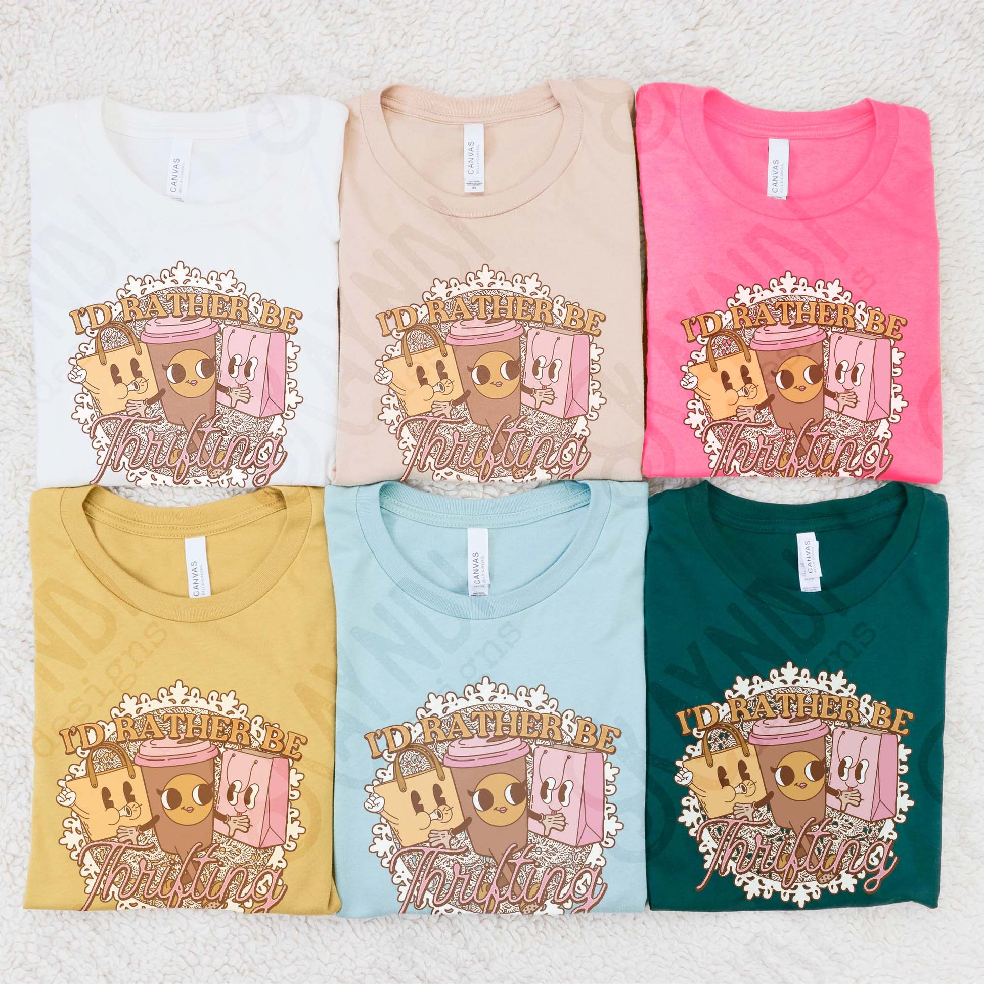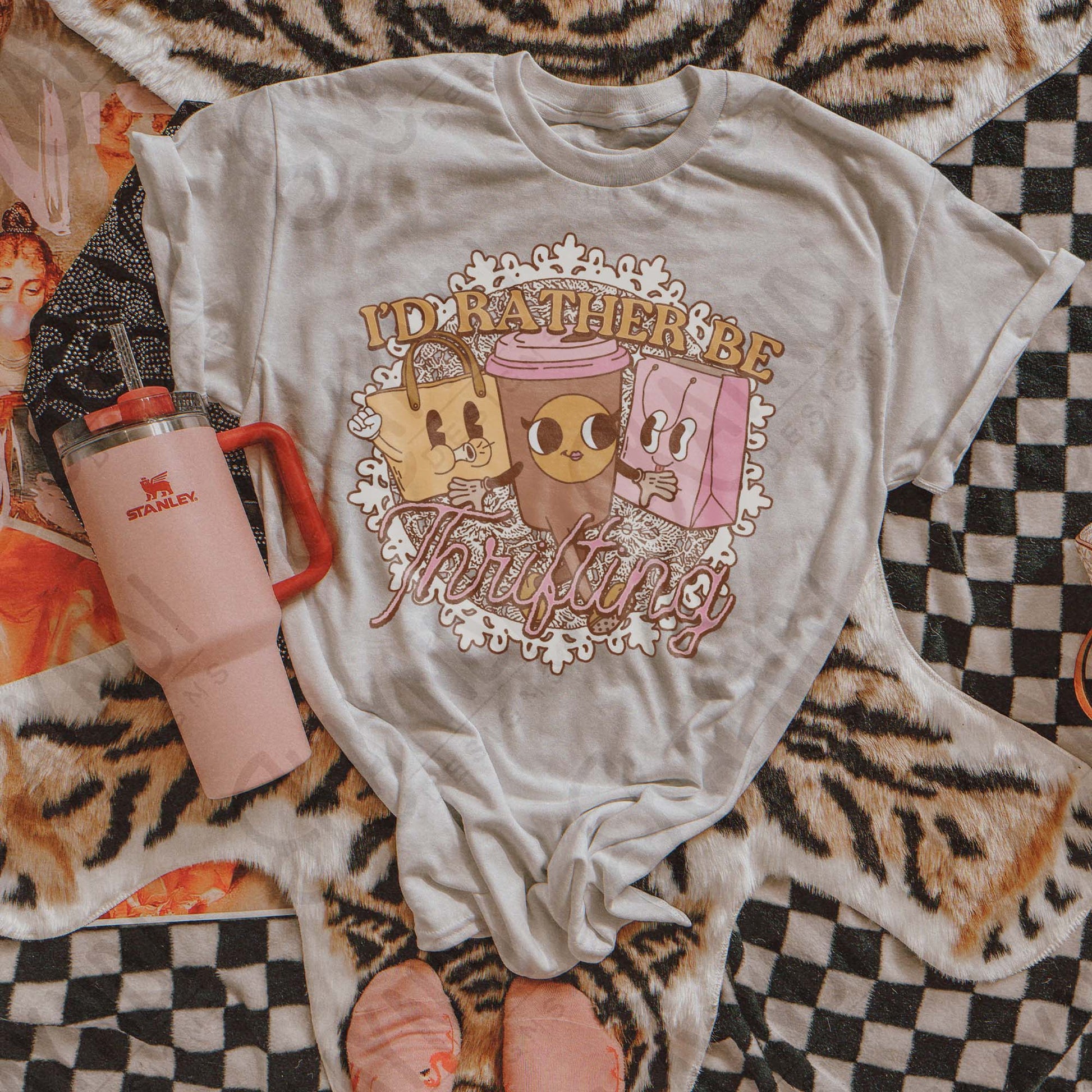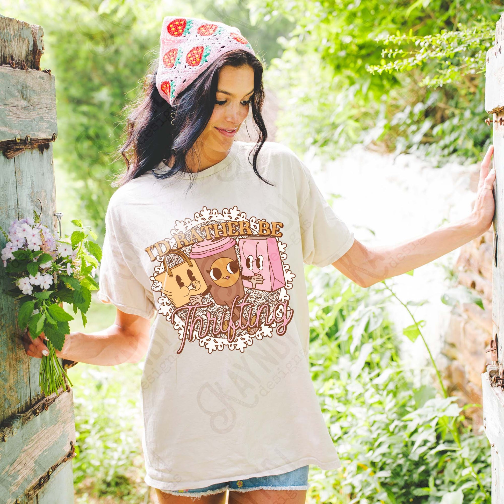 I'd Rather be Thrifting Pink Sublimation Design PNG Digital Download Printable Vintage Shopping Coffee