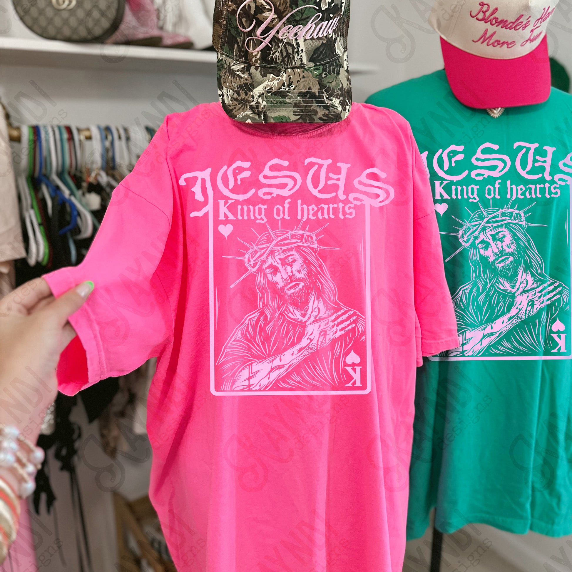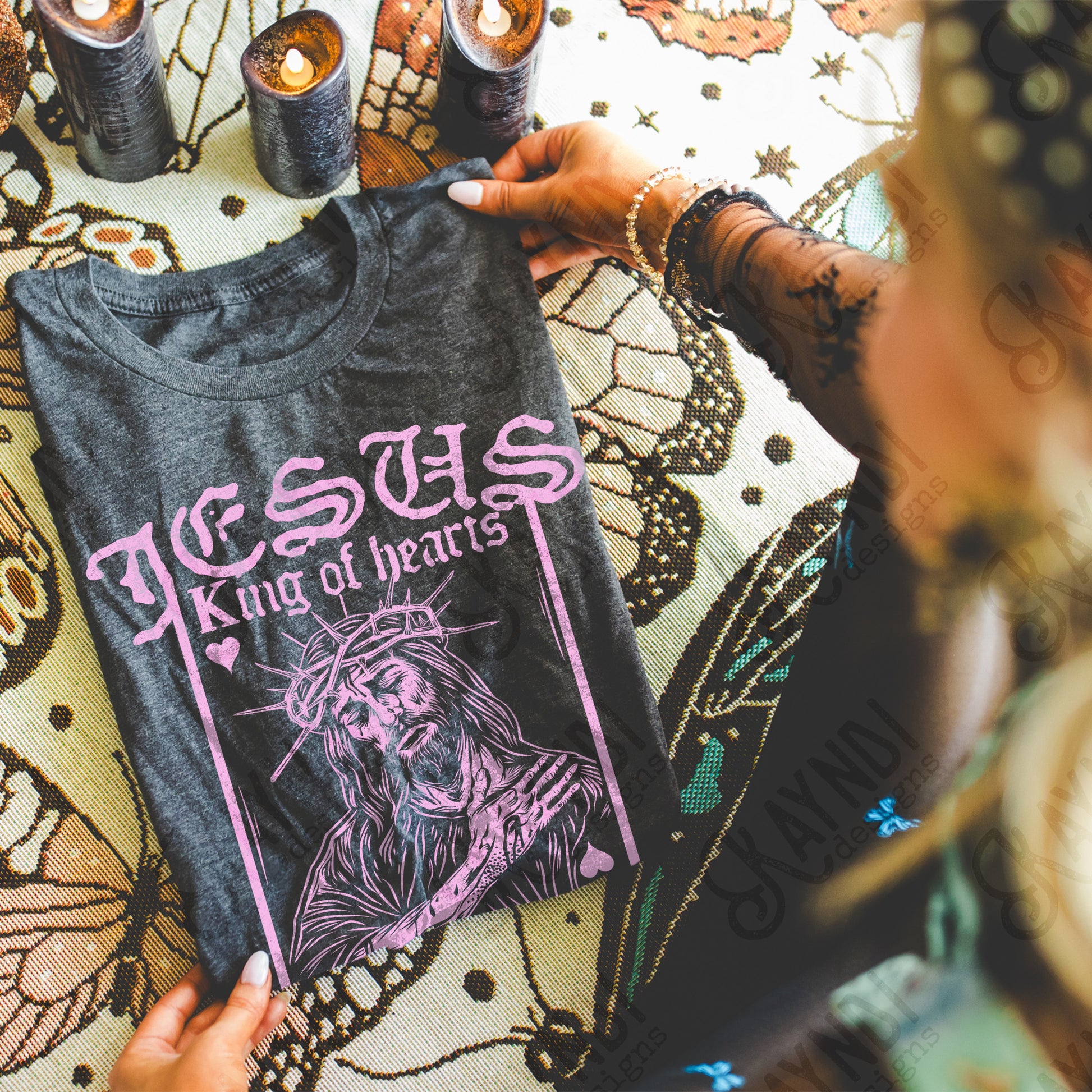 Jesus King of Hearts Light Pink Sublimation Design PNG Digital Download Faith Card