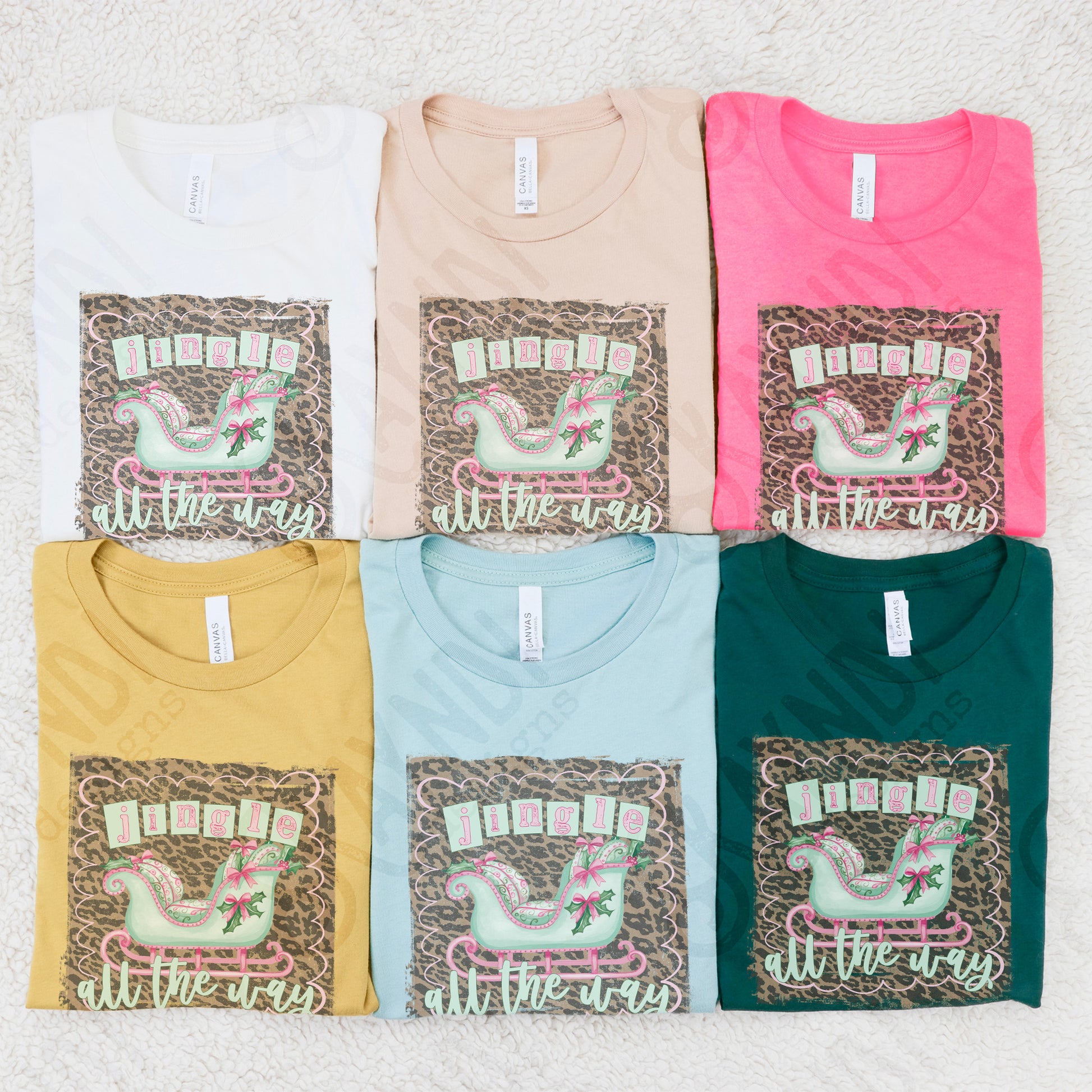 Jingle all the Way Sleigh Sublimation Design PNG Digital Download Printable Pink Retro Christmas