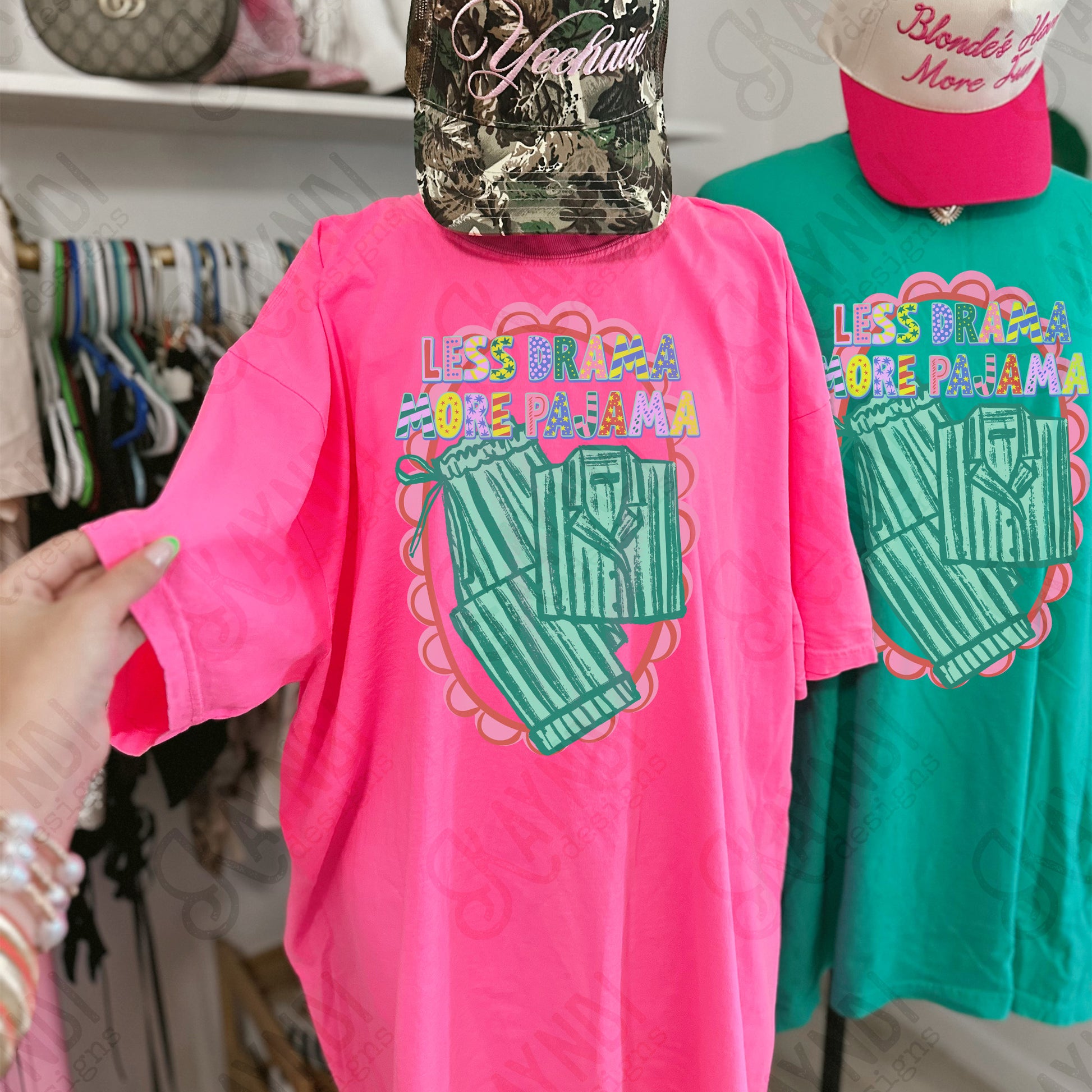 Less Drama More Pajama Sublimation Design PNG Digital Download Scalloped Green Stripe