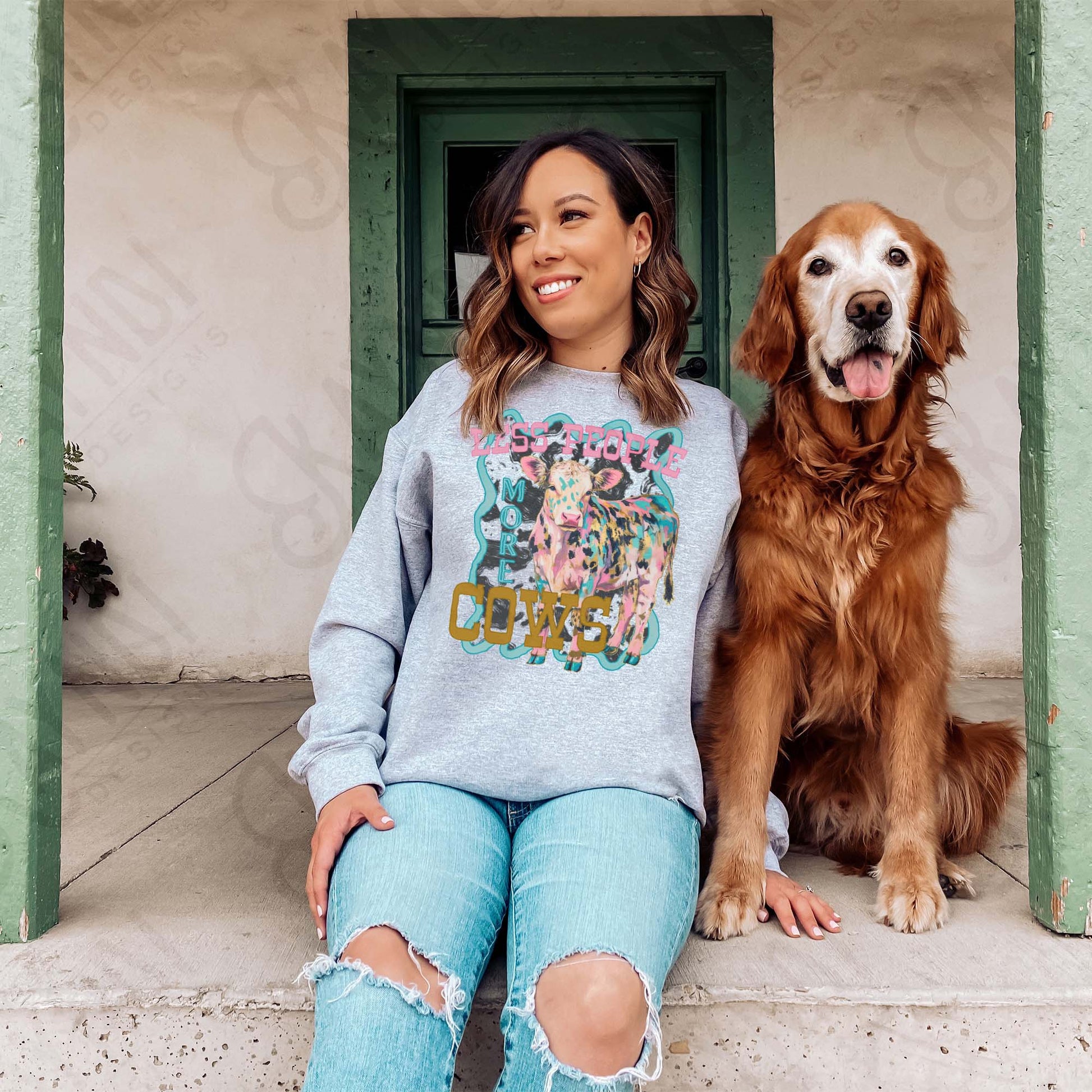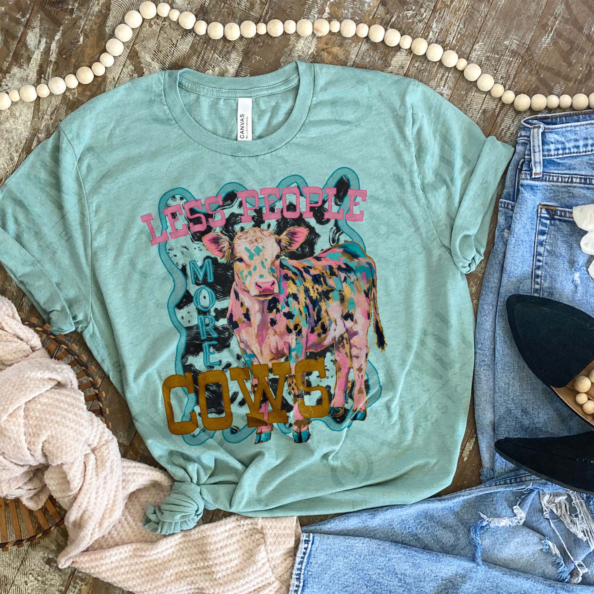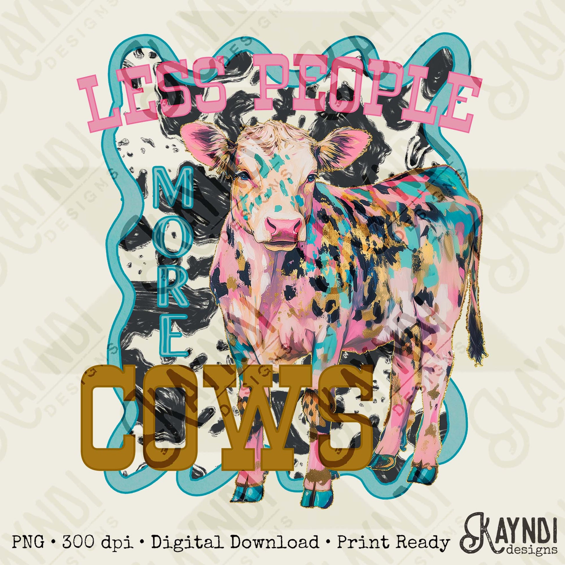 Less People More Cows Cowprint Sublimation Design PNG Digital Download Cheetah Pink Blue