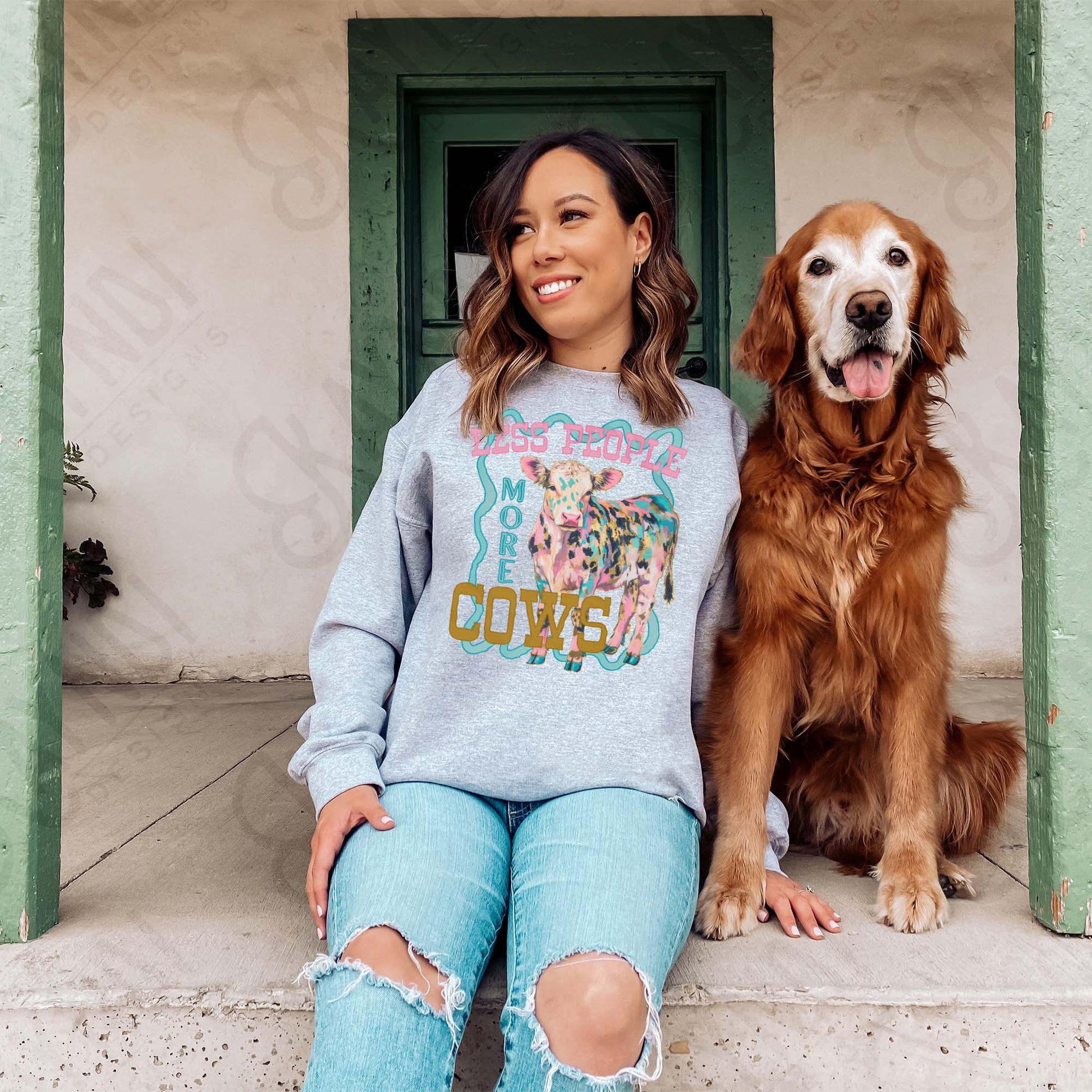 Less People More Cows Sublimation Design PNG Digital Download Cheetah Pink Blue