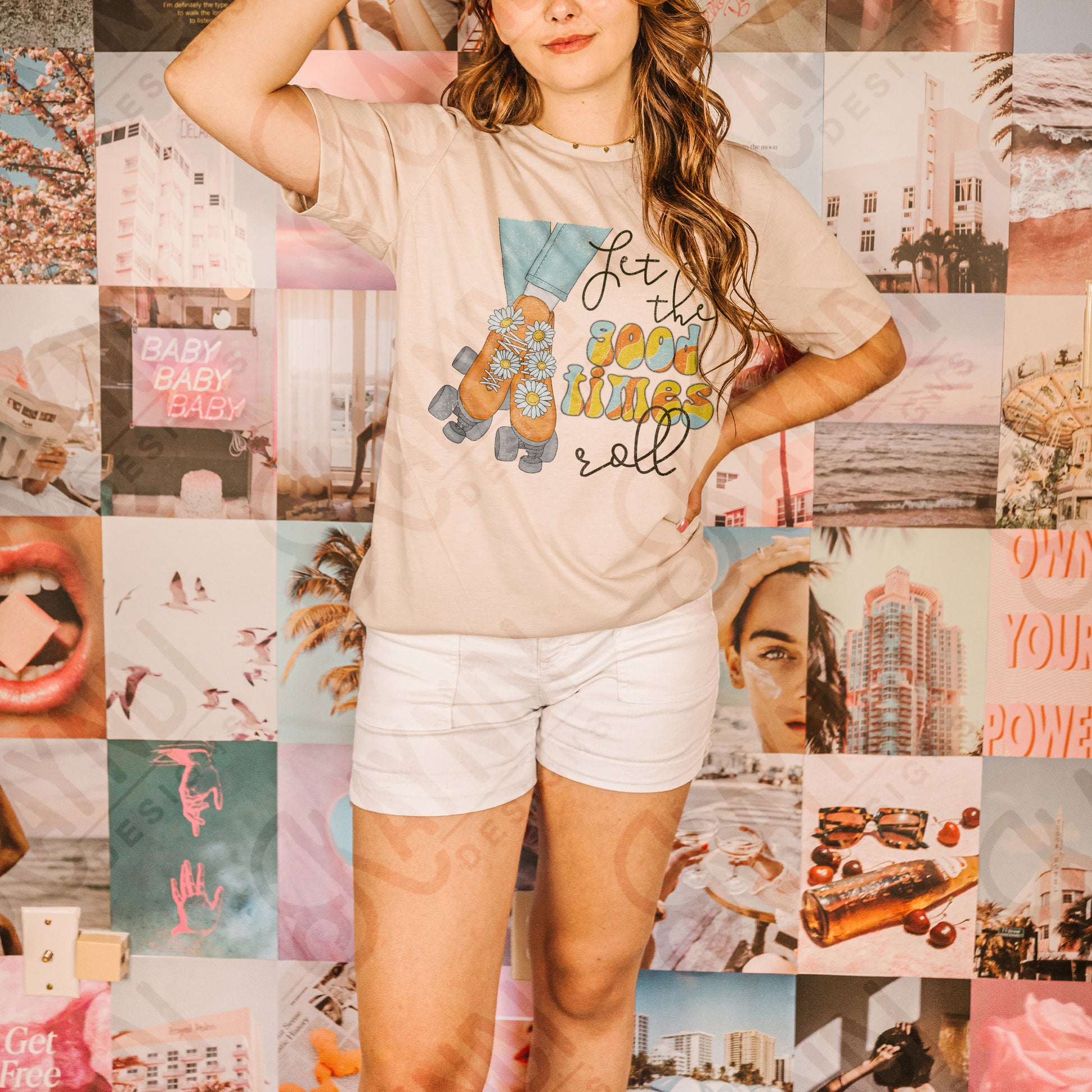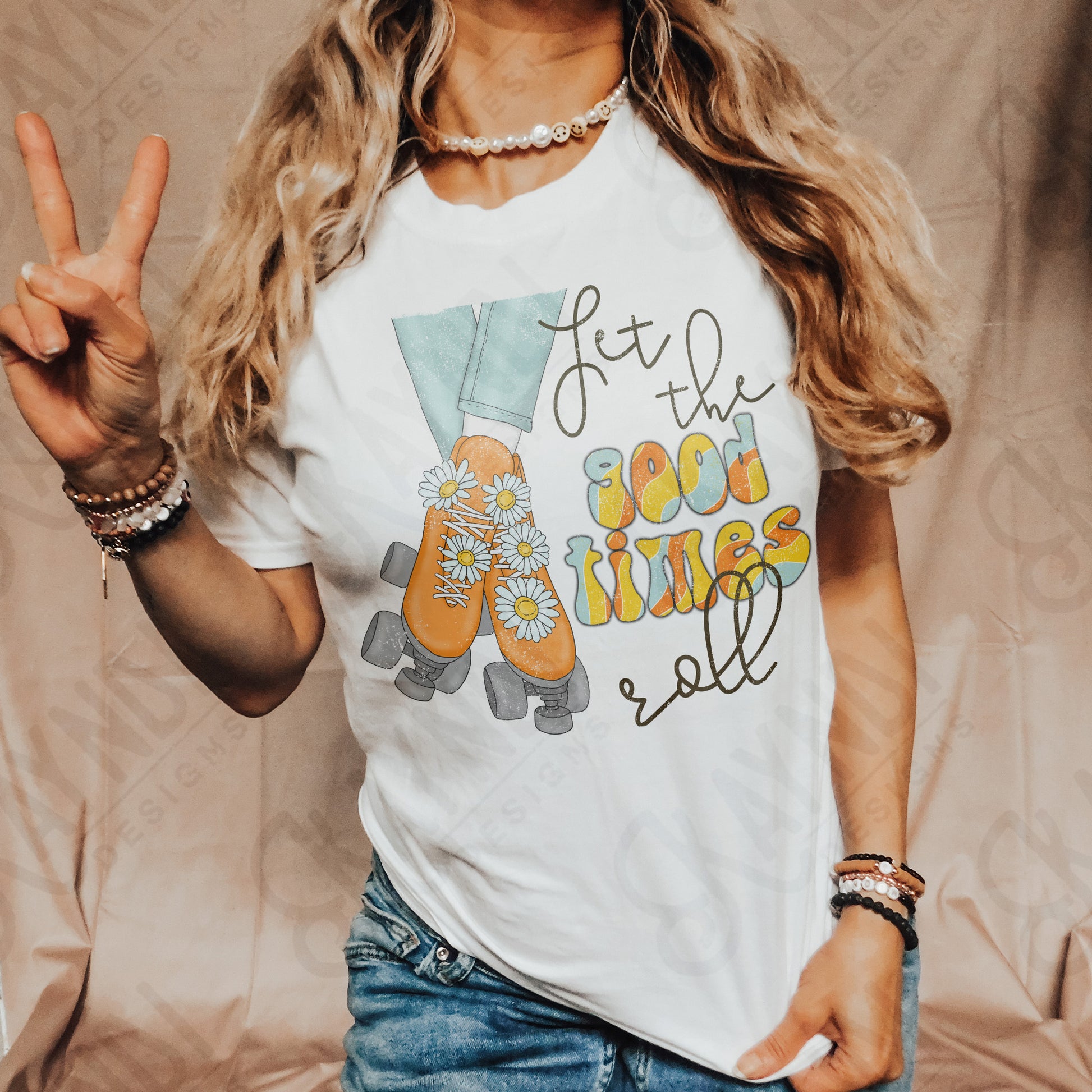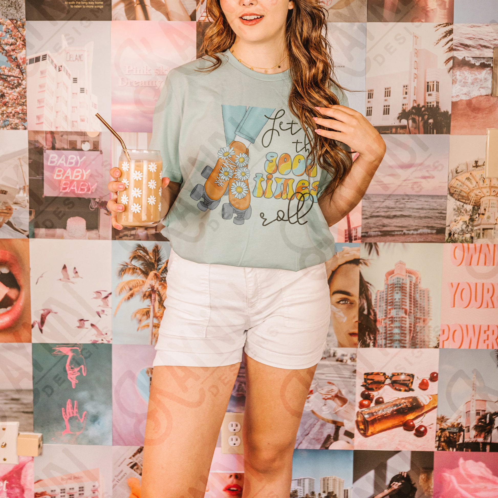Let the Good Times Roll Sublimation Design PNG Digital Download Printable Groovy Retro Roller Skates Daisy Hippy Vibes 70s 90s Daisys