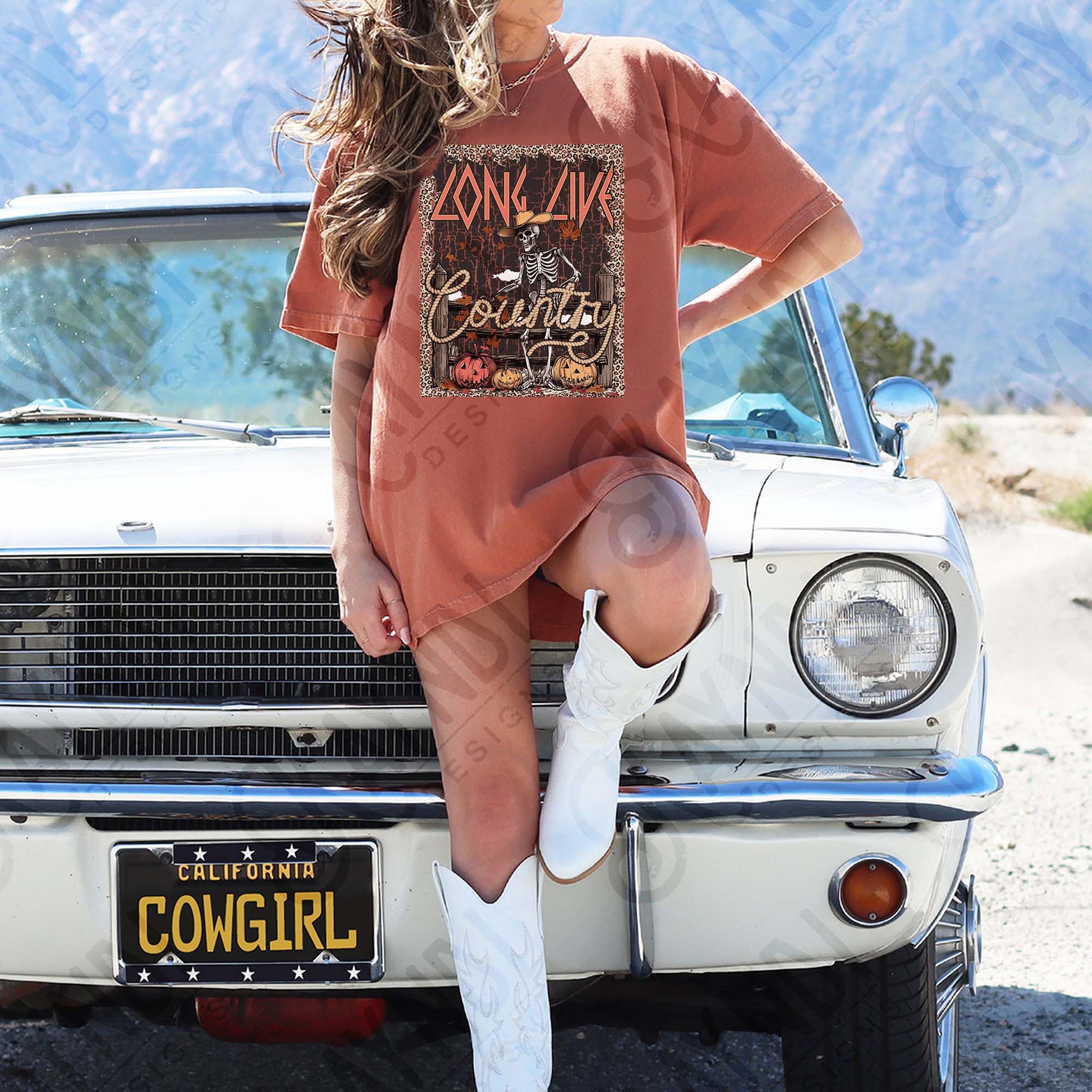 Long Live Country Sublimation Design PNG Digital Download Vintage Western Halloween Skeleton
