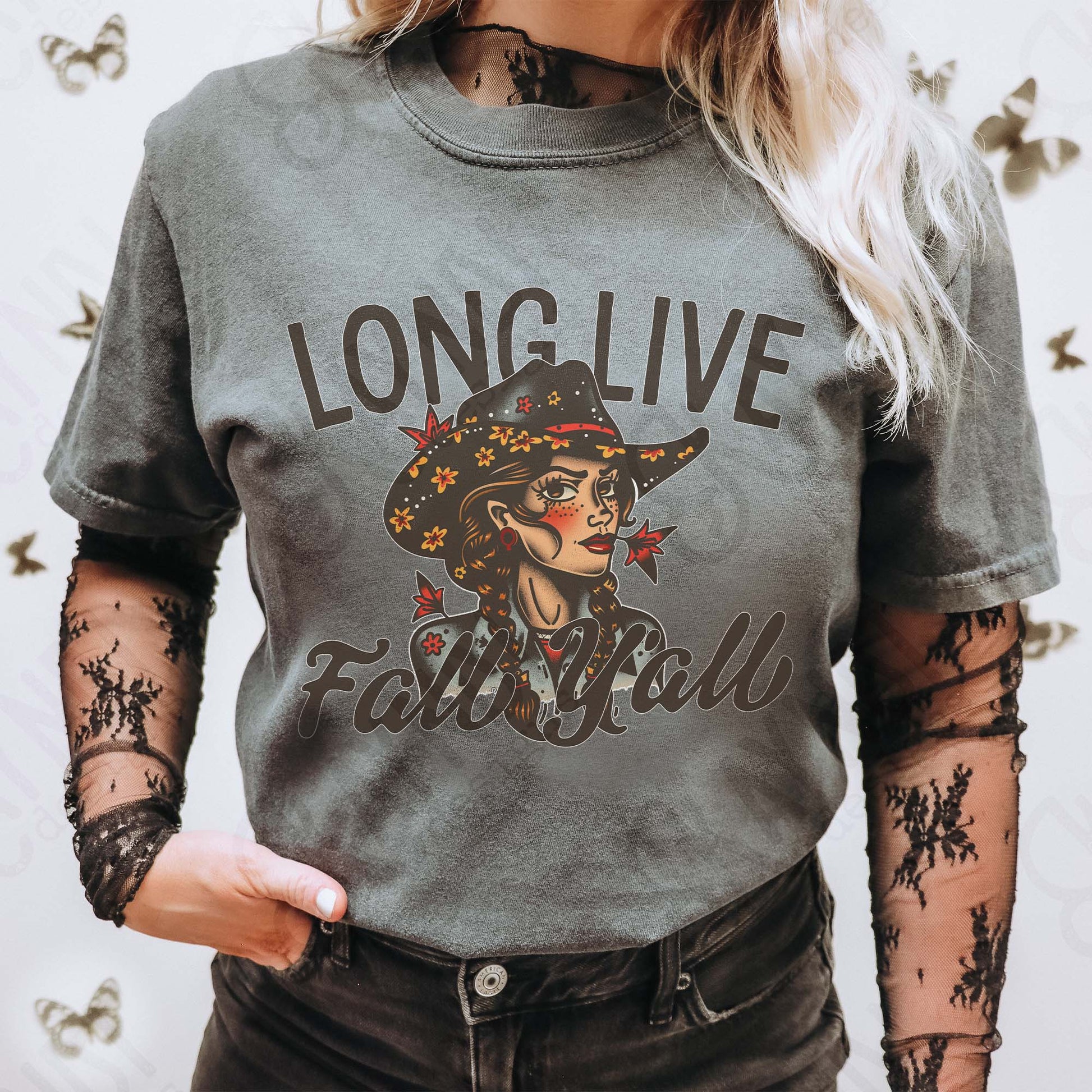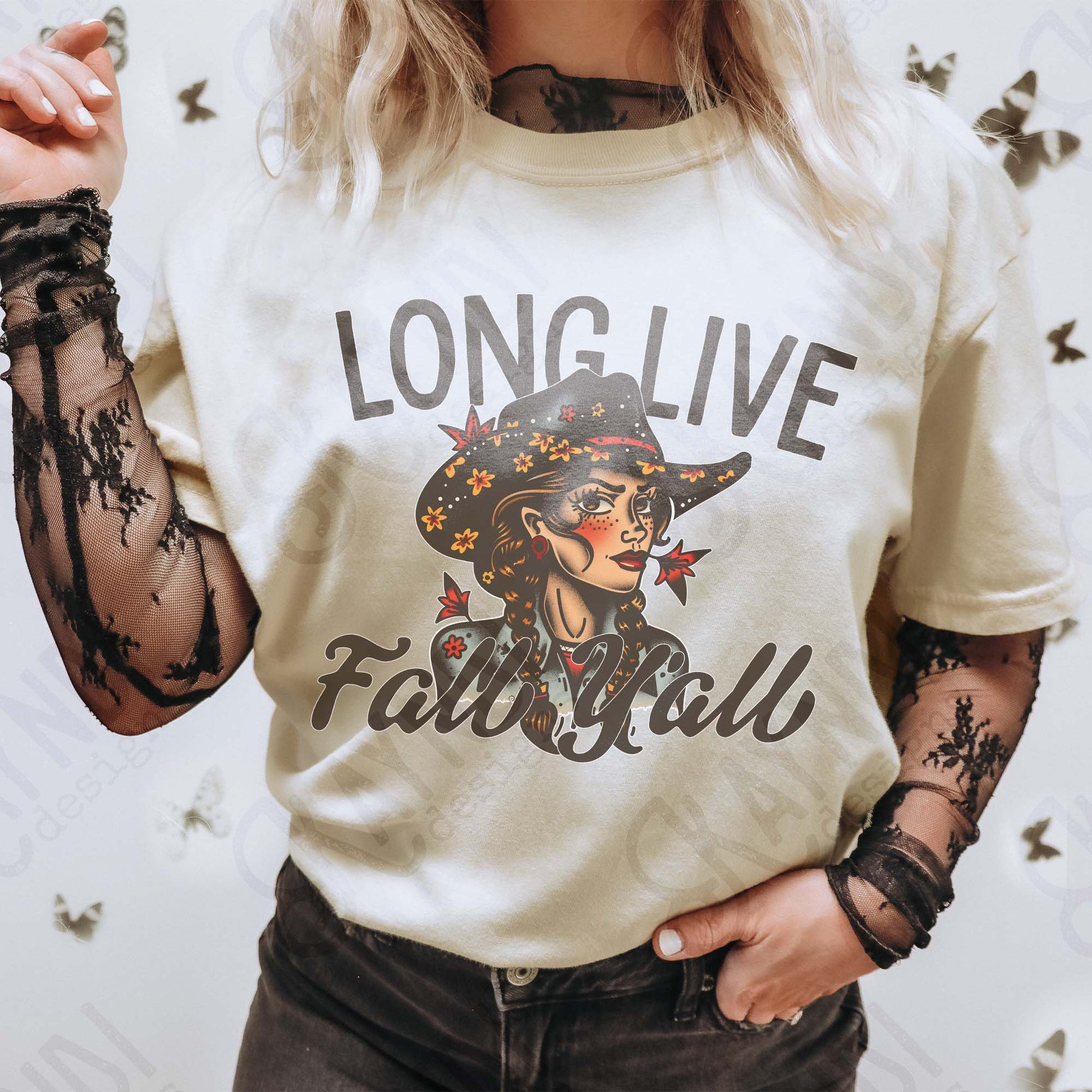 Long Live Fall Yall 2 Sublimation Design PNG Digital Download Western Cowgirl Black